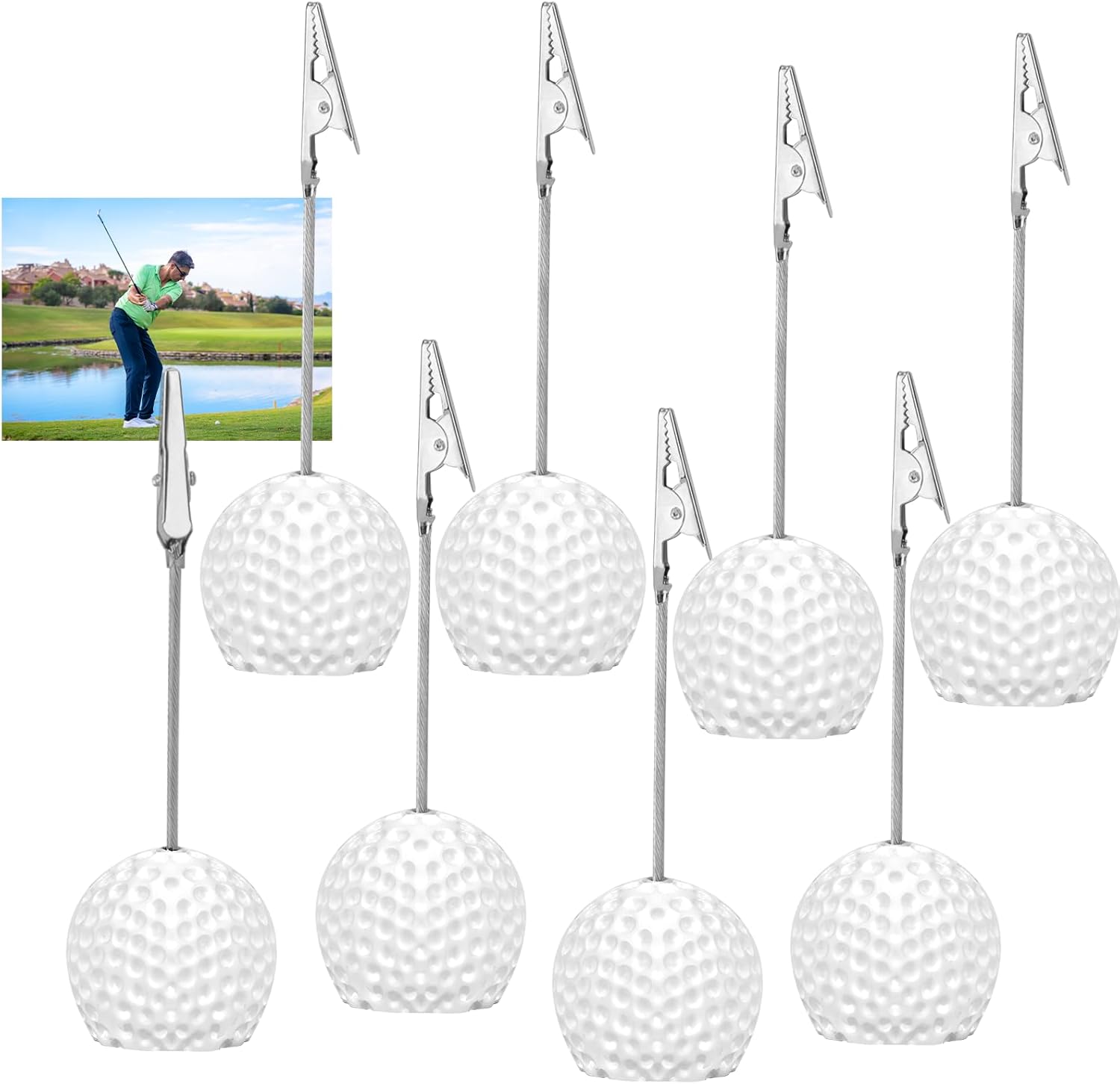 8 PCS Resin Golf Ball Base Alligator Clip Place Card Holder Golf Ball Shaped Table Number Holder Name Place Card Holder for Office Menu Events Wedding Party