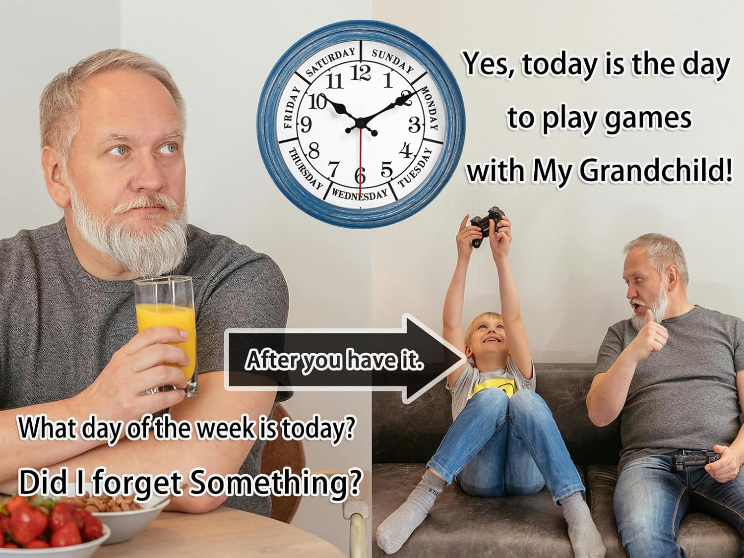 - Perfect for Retirees: With its clear weekday display, this clock is especially suitable for retirees who want to keep track of their days without hassle. The large, easy-to-read numbers ensure that the time and date are always visible, helping them manage their schedule and never miss an important event. Itβs a practical, user-friendly addition to their daily routine