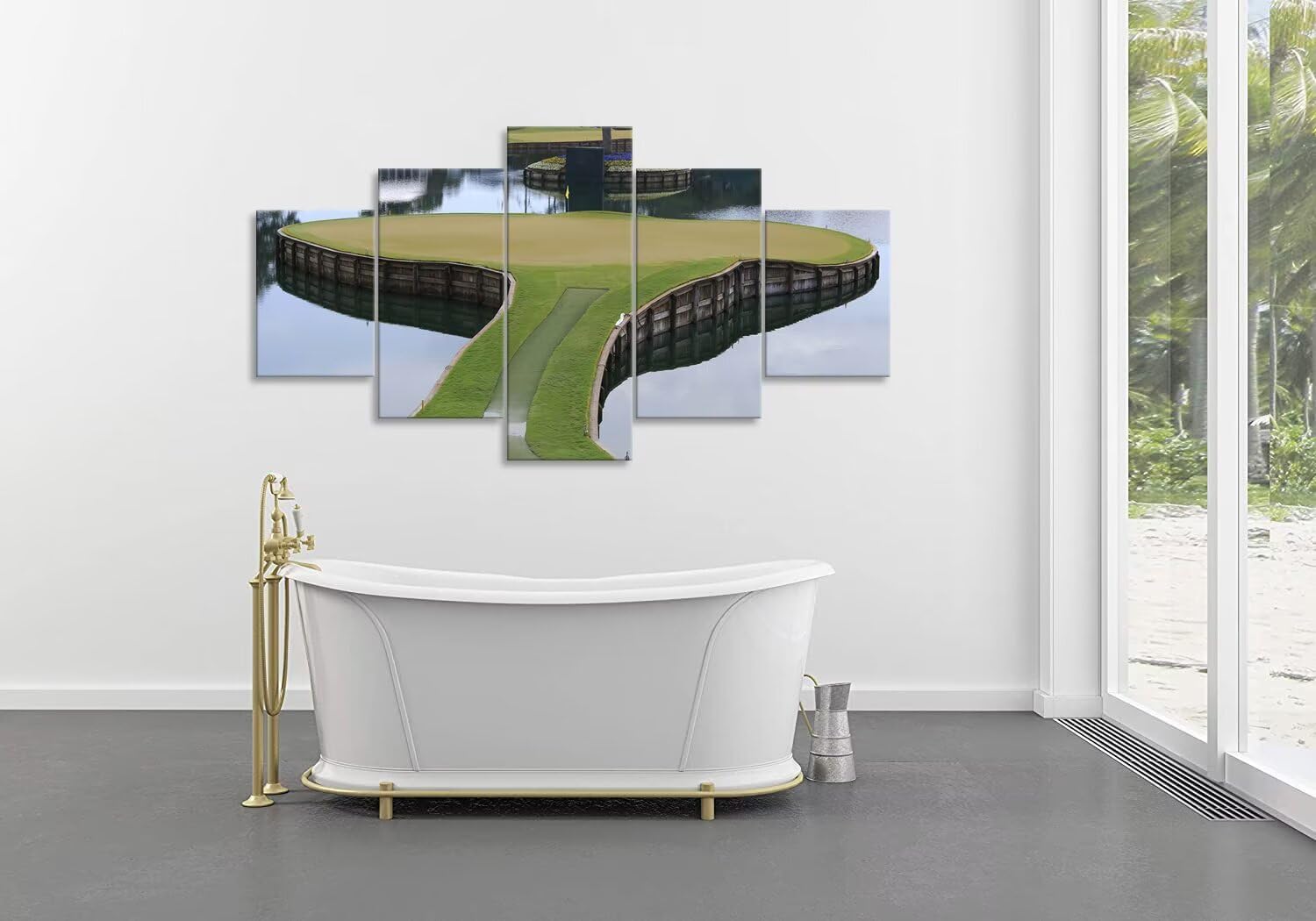 chenchenArt TPC Sawgrass Golf Course Wall Art Pictures USA Golf Course Wall Decor for Living Room Bedroom Bathroom Home Decorations Golf Posters Canvas Pirnts Framed Ready to Hang(60''W x 40''H)