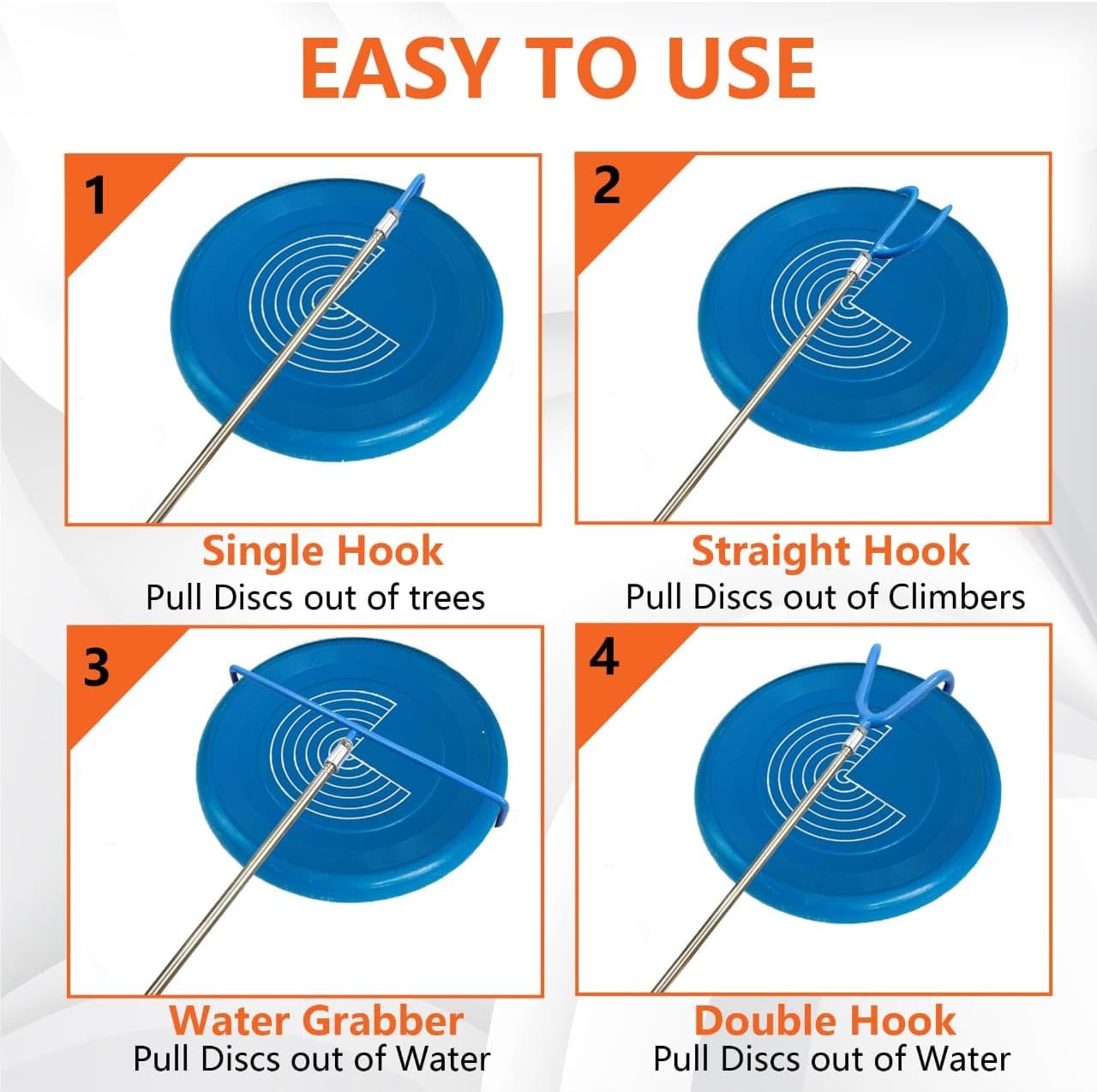 - Disc Golf Grabber: This retriever pole is equipped with a versatile disc golf disc retriever mechanism that securely grips discs without causing damage or scratches. It includes single hook, double hook, water grabber, and multi-hook options, ensuring you can retrieve discs from various conditions with ease.
