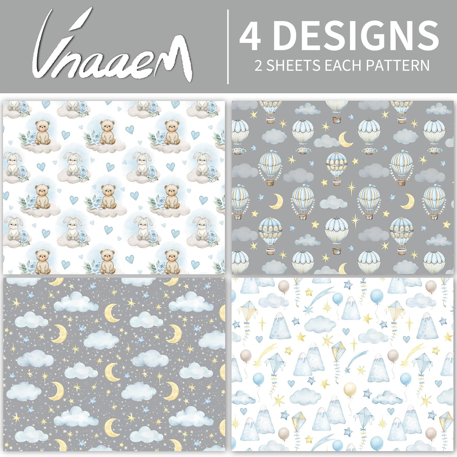 Vnaaem Baby Boy Wrapping Paper 12 Pc Baby Shower Wrapping Paper with Grey Balloon Bear Moon Patterns for Kids Birthday Party New Baby,19.6 X27.8Inch