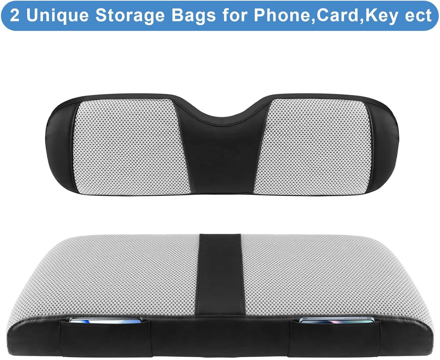 - 2 Pockets: Golf cart rear seat cover with two pockets at the front, perfect for conveniently storing keys, cards, Phone and other essential items