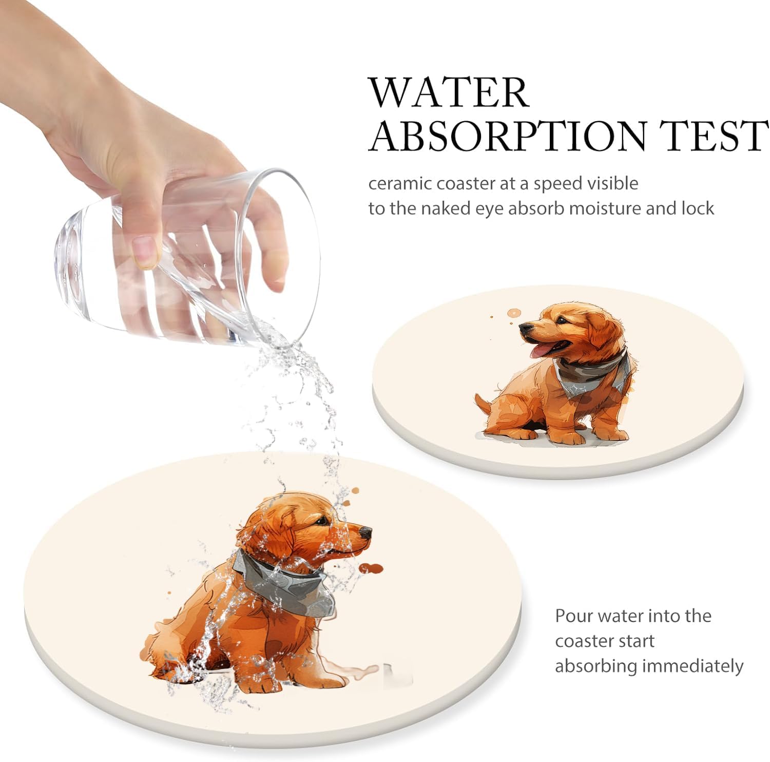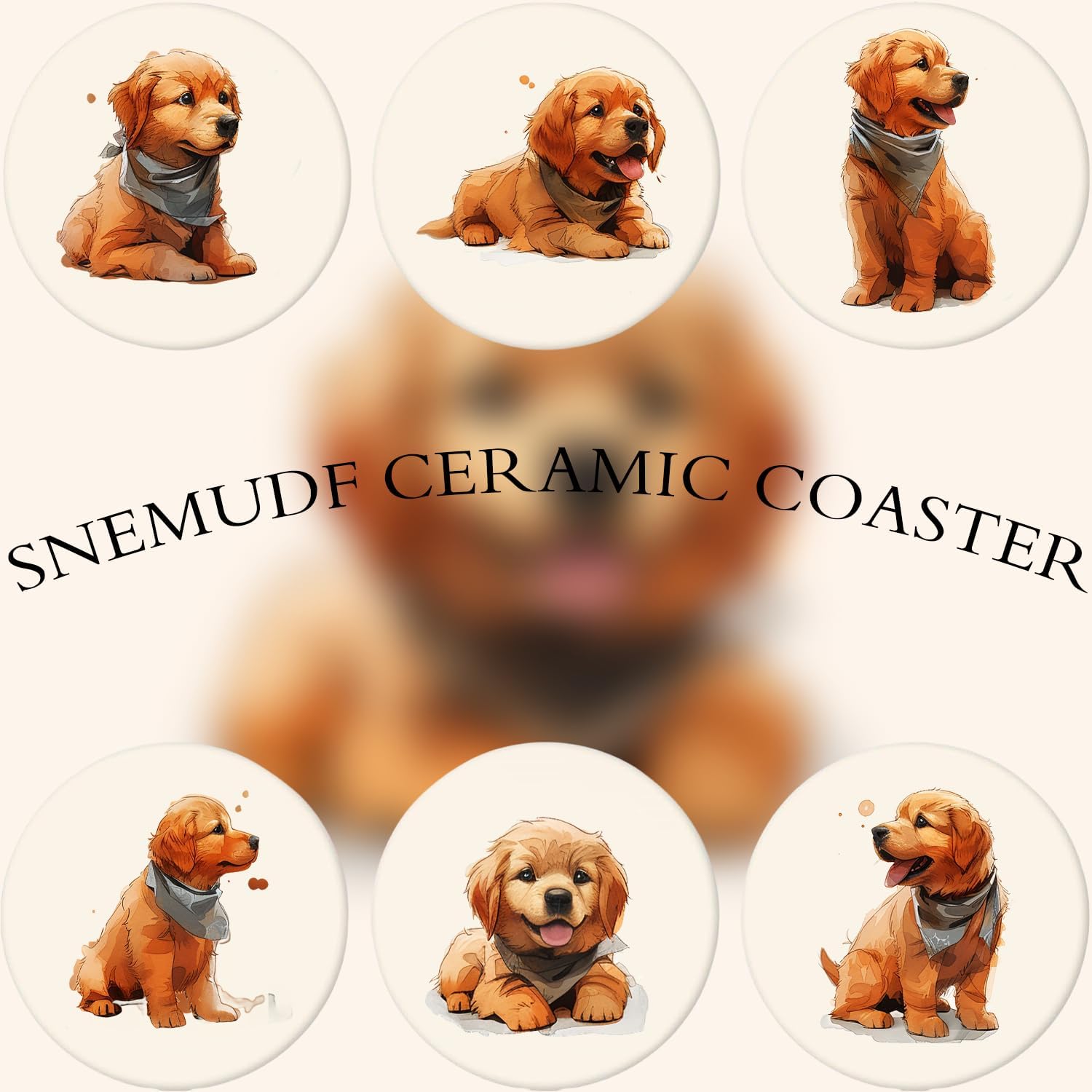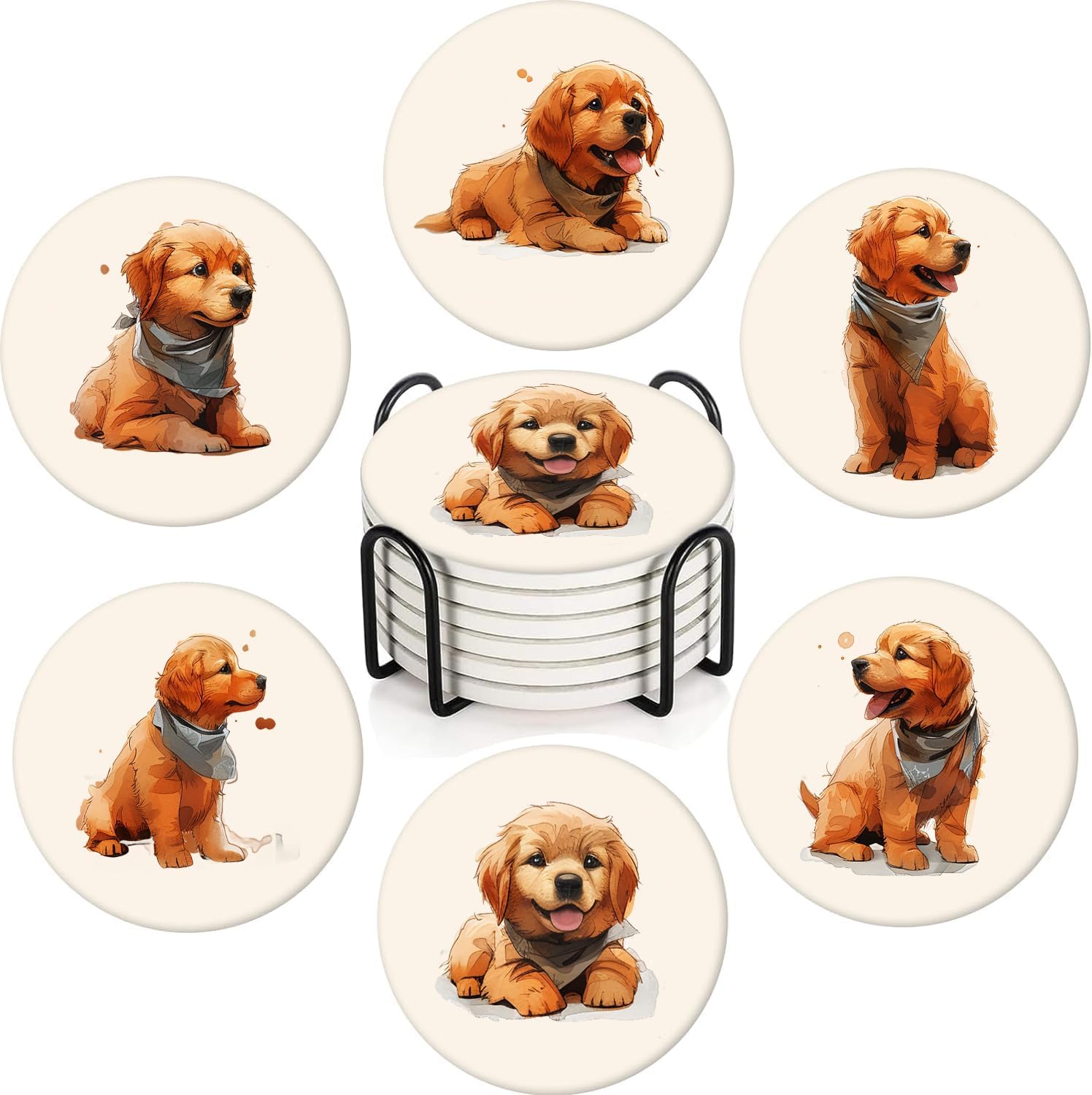 - 🌺【STYLISH AND FUNCTIONAL】This set includes 6 round ceramic coasters featuring a cute golden retriever puppy pattern. They not only protect your furniture but also add a touch of elegance to your home decor.