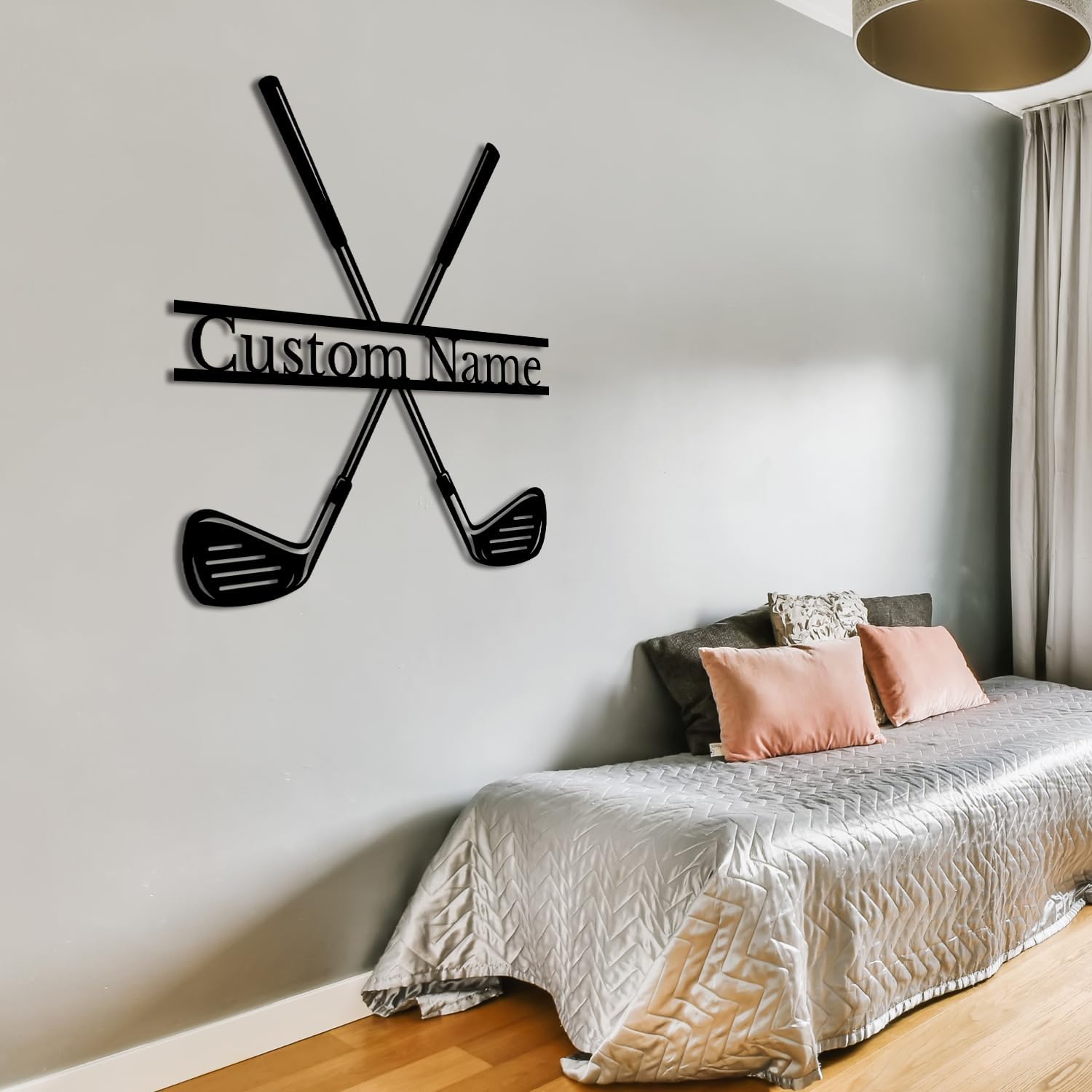 Personalized Custom Crossed Golf Metal Wall Art,Personalized Golfer Name Sign Decoration For Room,Hole Golf Club Decoration (Style-4)