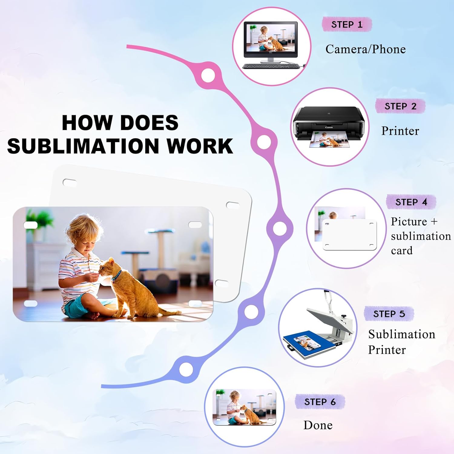 - DIY Function : The aluminum car license plate is sublimated, and the blank license plate label allows you to design your own custom design with a glossy finish, making it a beautiful and practical gift for friends; Note: Only the coated side can be sublimated; The temperature setting is recommended to be 180 °C, which is about 354°F, and the sublimation time is recommended to be 60~120s
