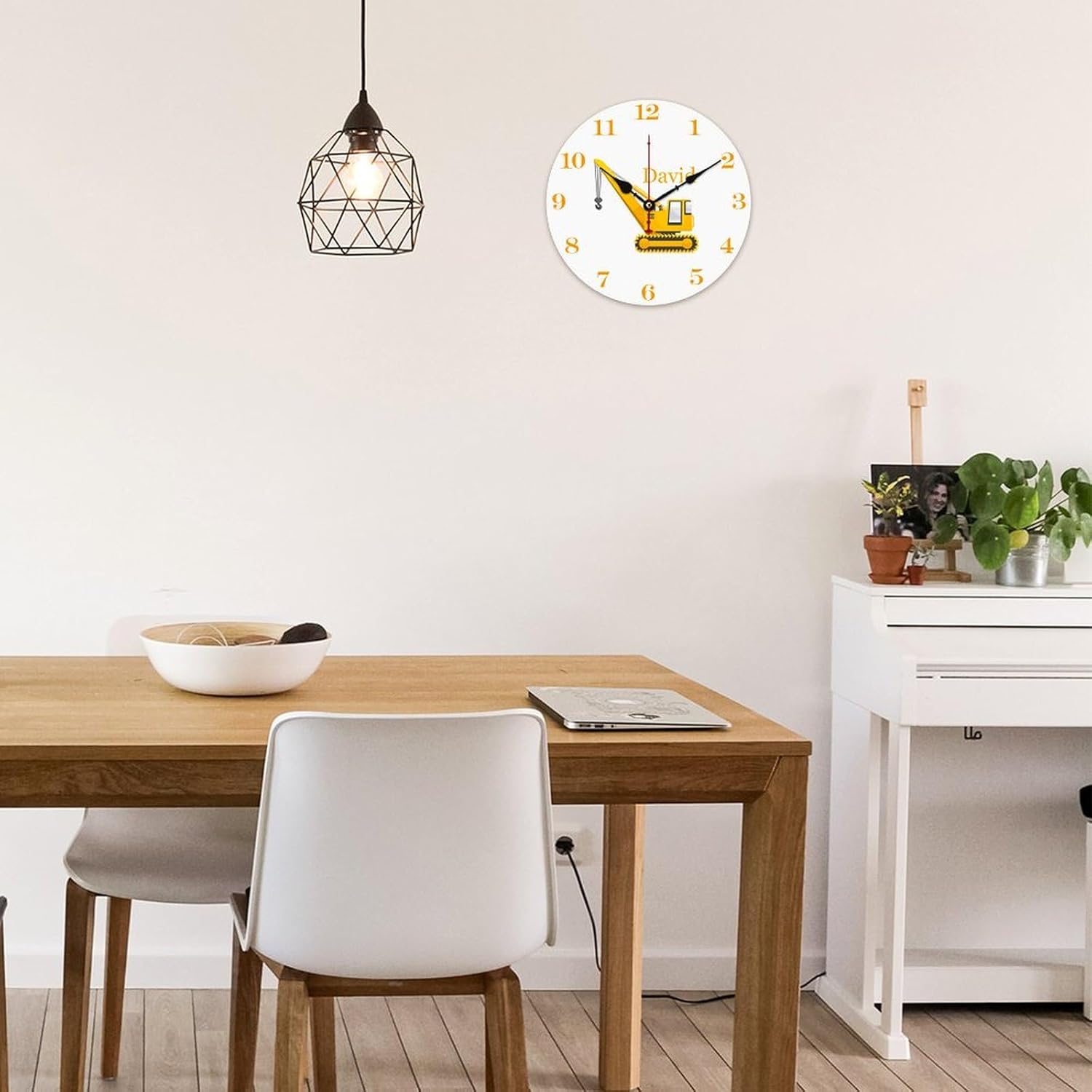 Personalized Crane Truck Kids Wood Wall Clocks Rustic Battery Operated 10 inch Non Ticking Engineering Vehicle Wall Clock for Kids Rooms Boys Girls,Nursery Wall Clock,Custom Kids Clock with Name