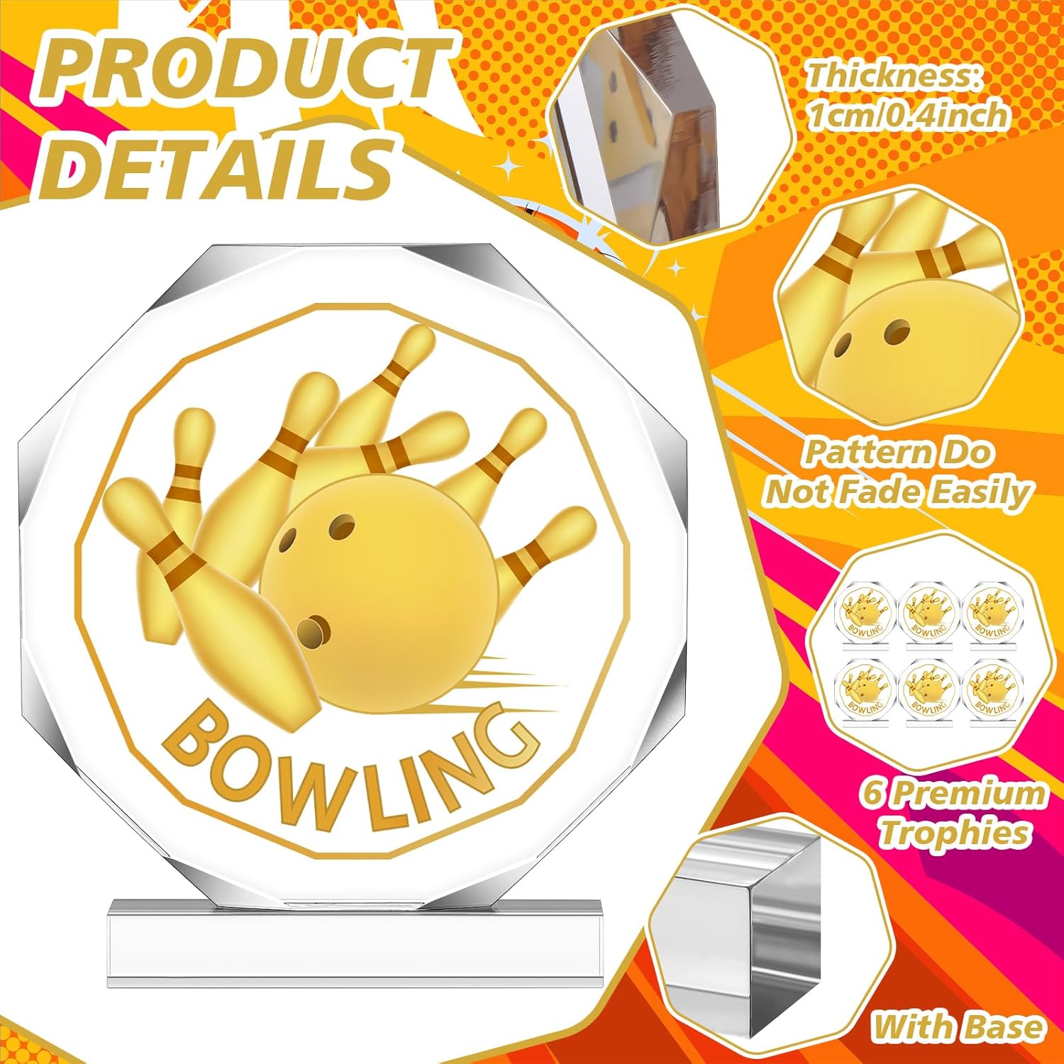 - You Will Receive: 6 bowling trophies; This set of 6 is appropriate for honoring the entire team or giving recognition to individual participants; Elegantly crafted, these trophies would become cherished keepsakes to remember a victorious season for years to come