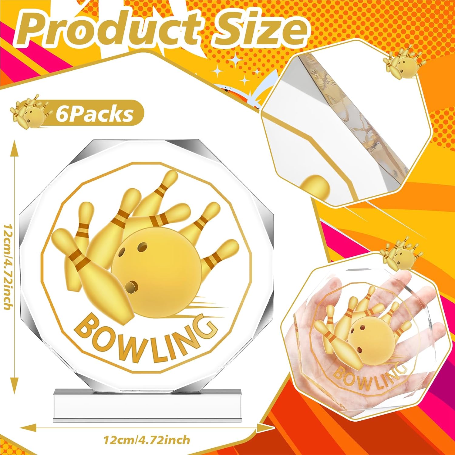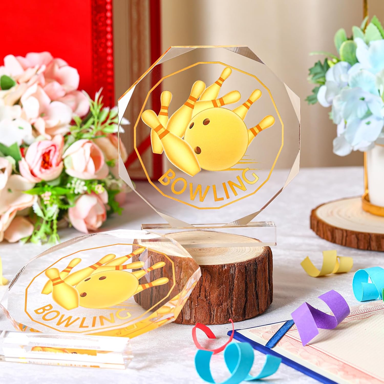 - Appropriate Size: with dimensions of 4.72 x 4.72 inches, the compact size of the bowling medal makes it easy to handle and display; Despite the size, it stands with a robust demeanor, highlighting its sturdy build, which is a result of its quality acrylic construct; The size of base plate is about 3.54 x 0.59 inches