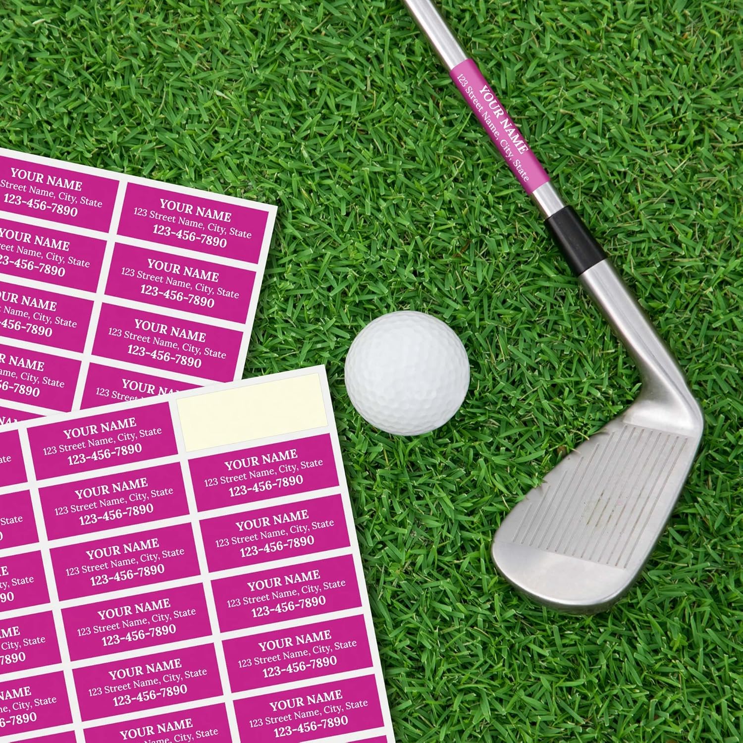 Custom Pink Golf Club ID Labels, Personalized Golf Club Name Sticker,0.75x2 Inches, Set of 30, 4 Mil Vinyl Decal Stickers Weather Resistant, Made in USA by My Sign Center