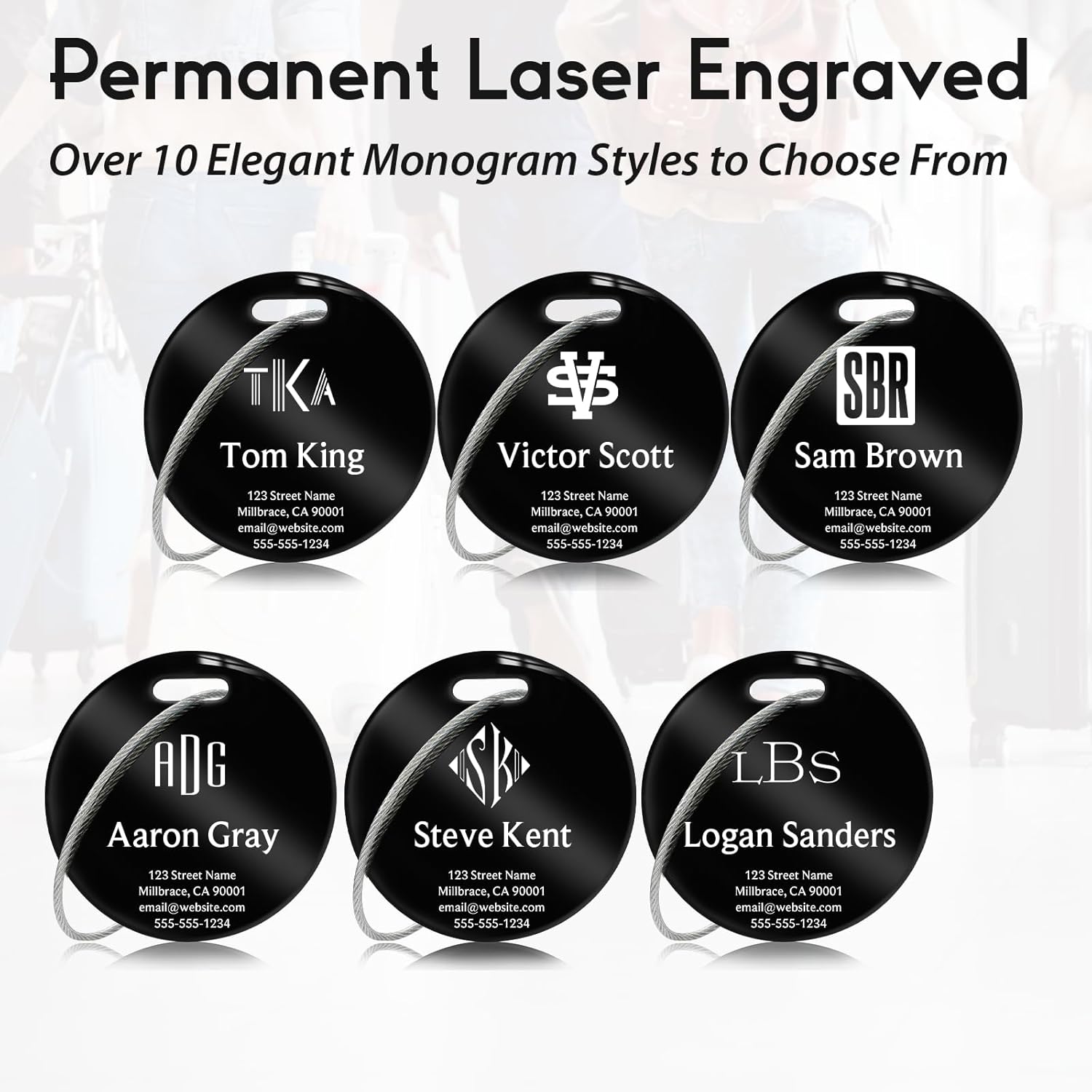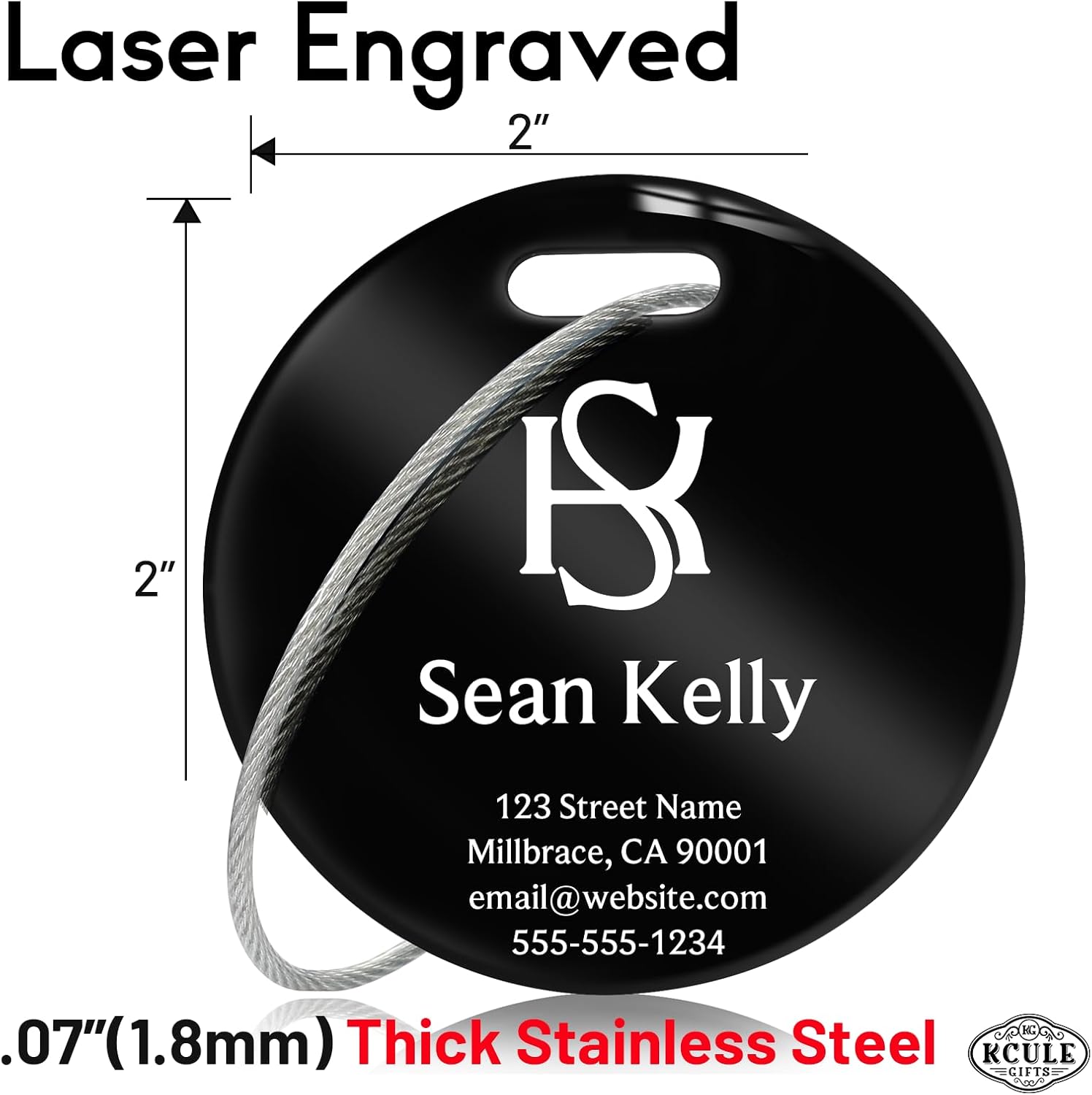 Personalized Luggage Tags for Suitcases - Stainless Steel Custom Luggage Tags for Backpacks & Bags, Sturdy, Waterproof & Heavy Duty (Black/Round)