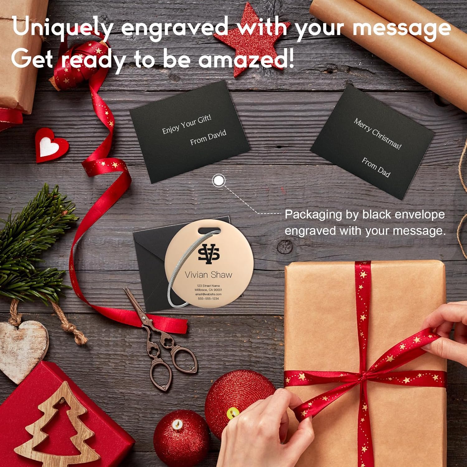 Personalized Luggage Tags for Suitcases - Stainless Steel Custom Luggage Tags for Backpacks & Bags, Sturdy, Waterproof & Heavy Duty (Rose Gold/Round)