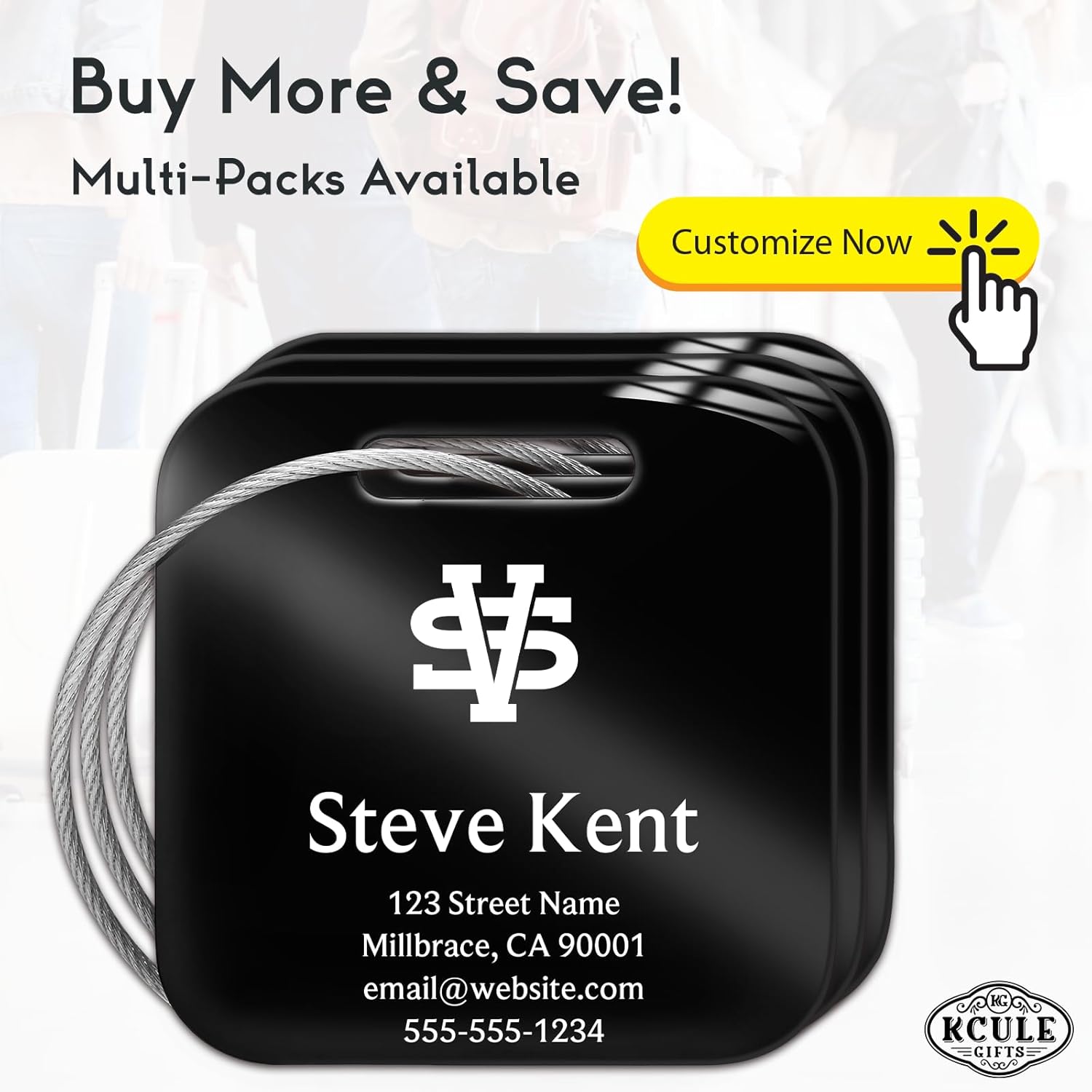Personalized Luggage Tags for Suitcases - Stainless Steel Custom Luggage Tags for Backpacks & Bags, Sturdy, Waterproof & Heavy Duty (Black/Square)