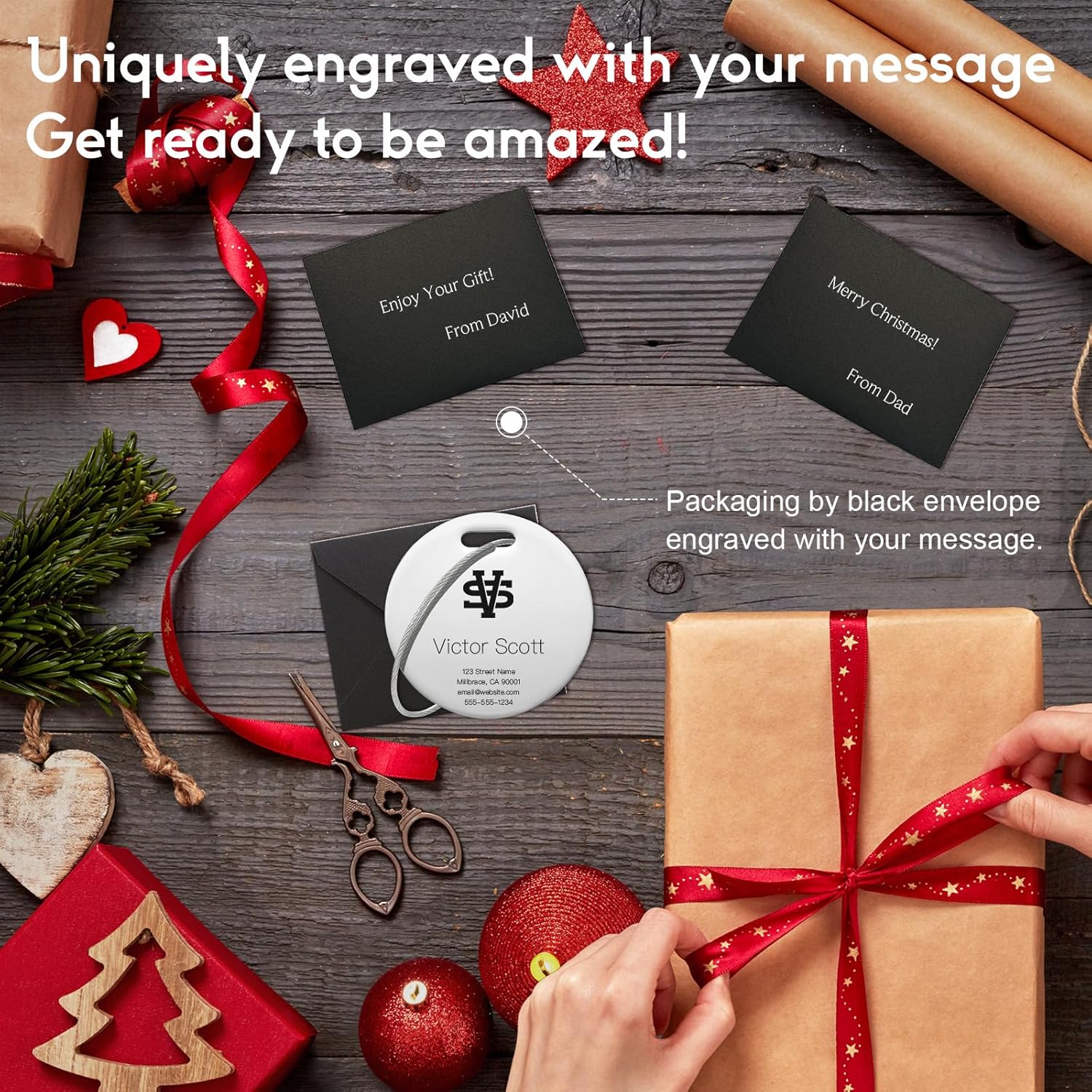 Personalized Luggage Tags for Suitcases - Stainless Steel Custom Luggage Tags for Backpacks & Bags, Sturdy, Waterproof & Heavy Duty (Silver/Round)