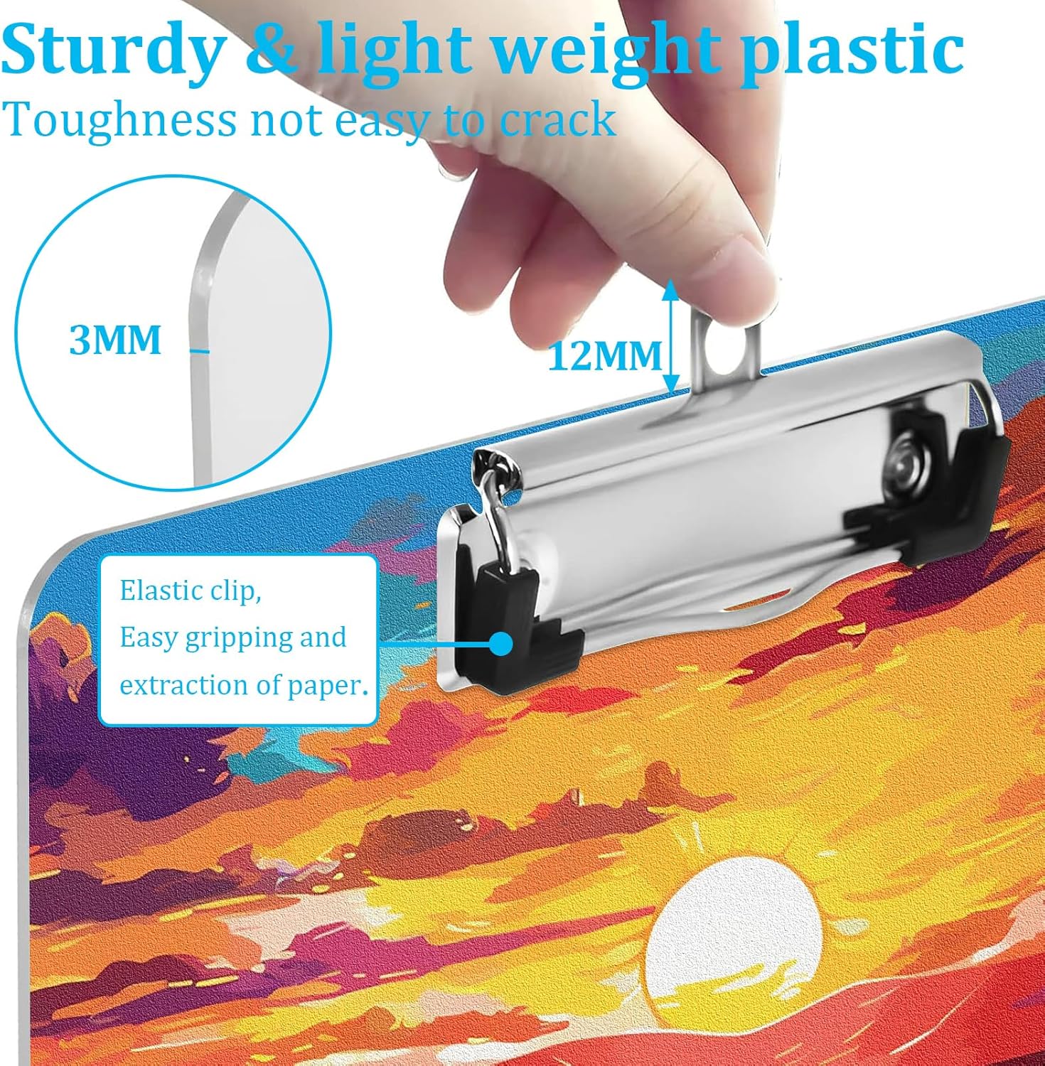 Sunflowers and Sunset Clipboard A4 Letter Size Plastic Decorative Clipboards for Teacher,Nurse Doctor Student and Kid Cute Design for Standard Size 12.5 x 8.7