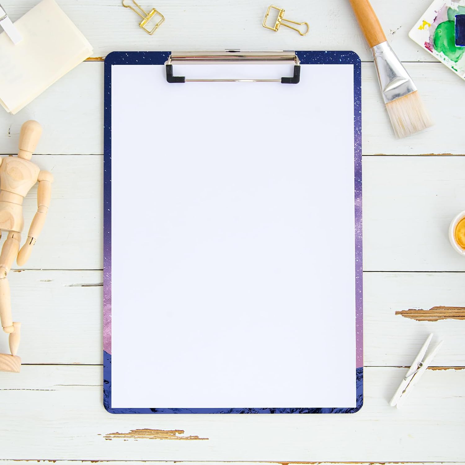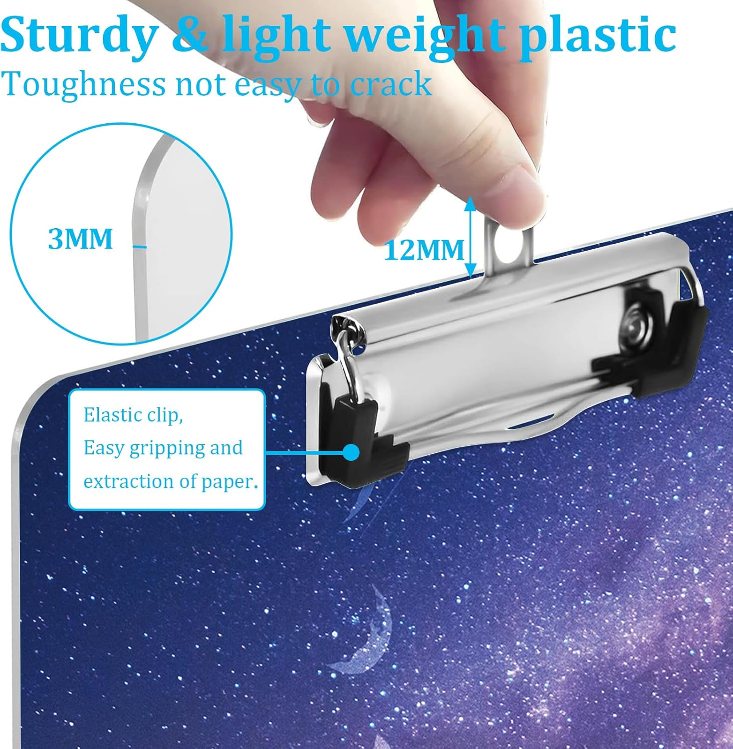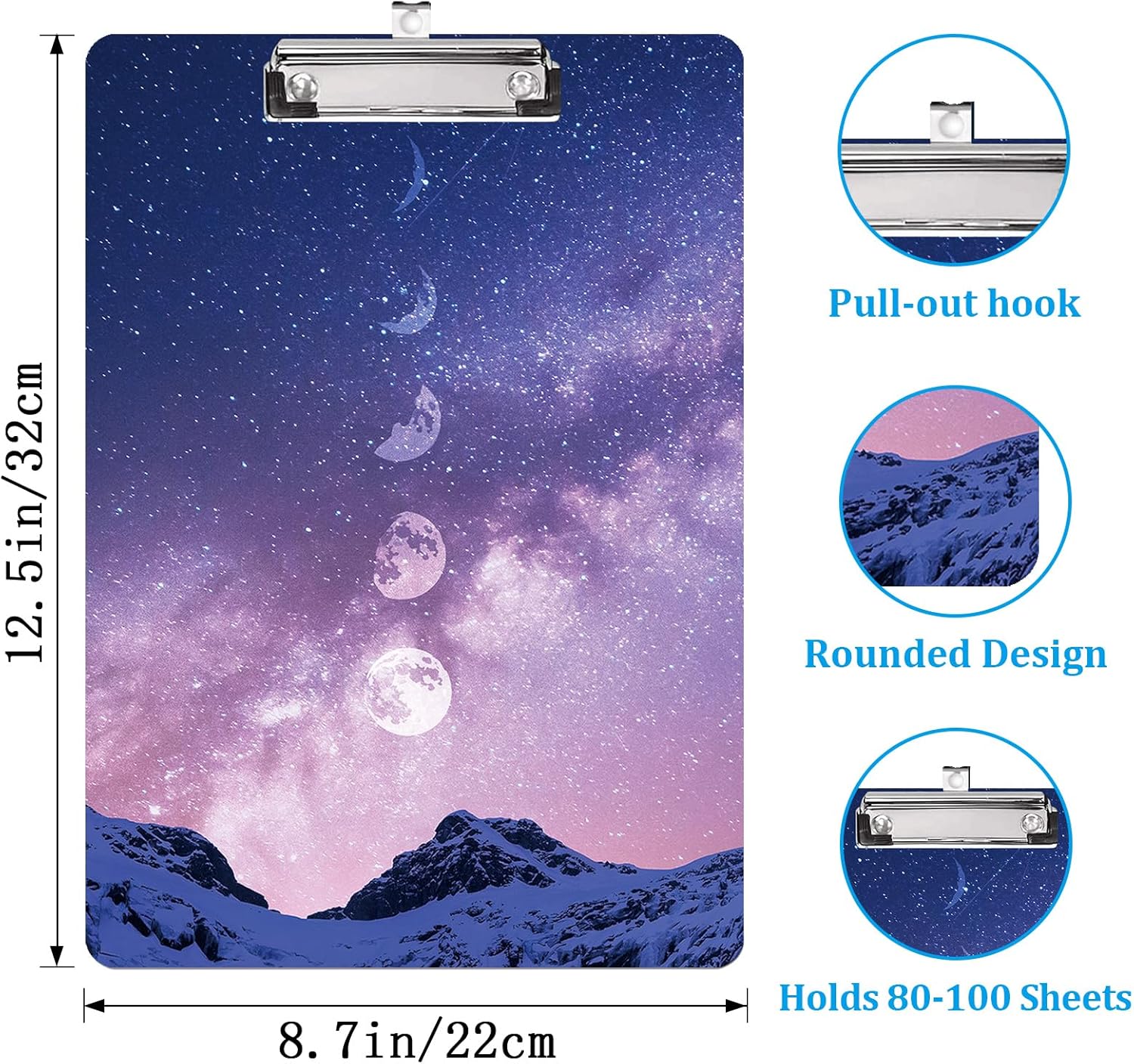 Design Letter Size Plastic Clipboards for Students Women Man and Kids A4 Standard Size 8.7" x 12.5" with Low Profile Metal Clip Lunar Eclipse Moon Purple Mountains