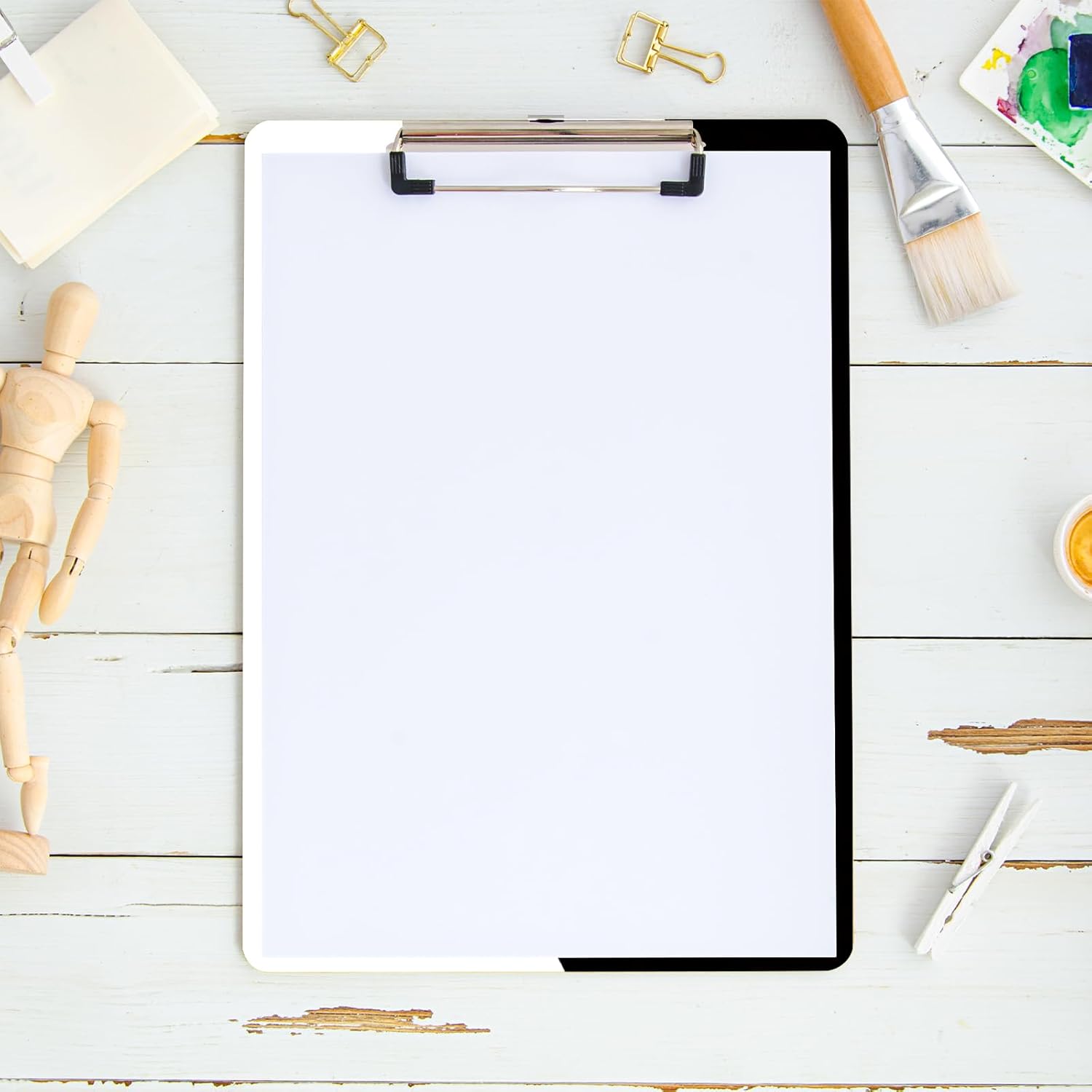 - Standard clipboard Dimension:Measures 12.5*8.7 inches,the clipboard can hold standard A4 size papers with ease,and easy to clip on and take off.Suit for storing your draft papers artworks,invoices,work orders and more.Designed with Low-Profile Metal Clip,easy to stow away when not needed and fits in most briefcases.