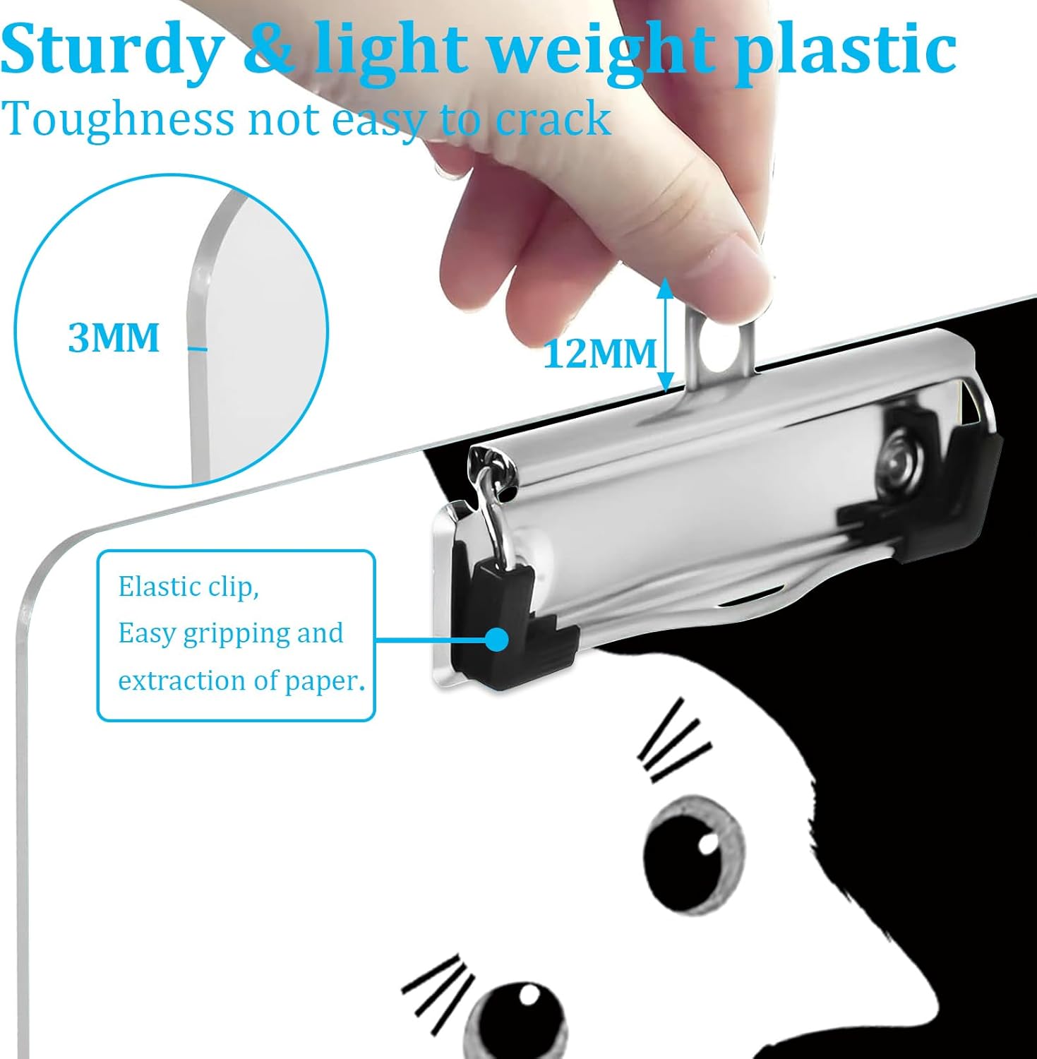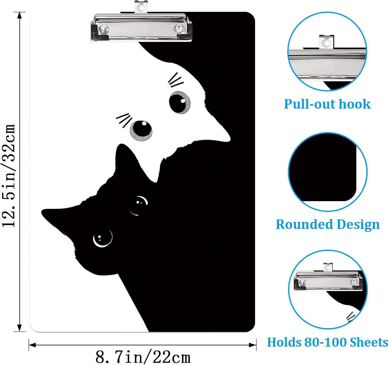 Clipboard Decorative,Clipboard Cute,A4 Letter Size Clip Board Pattern with Low Profile Clip,Paperboard for Office School Supplies Black and White Cat