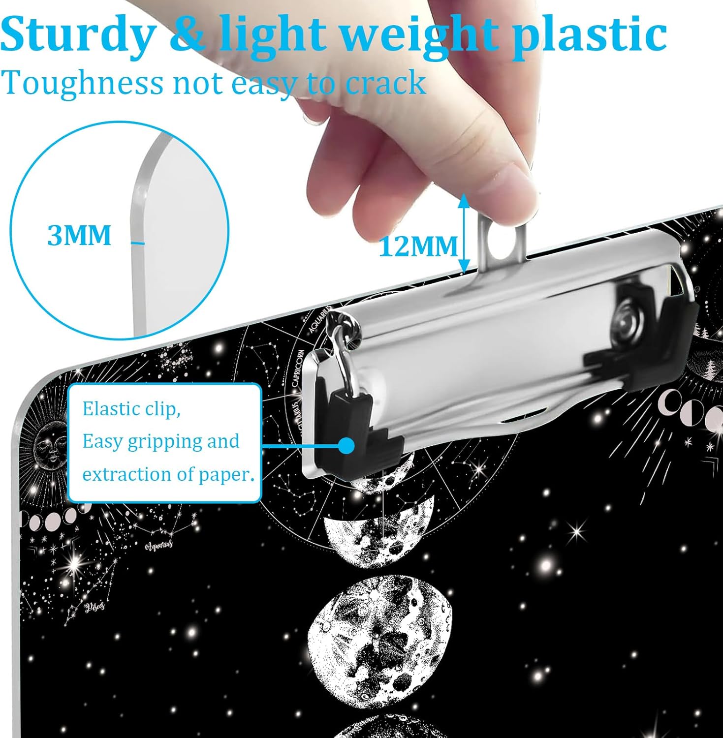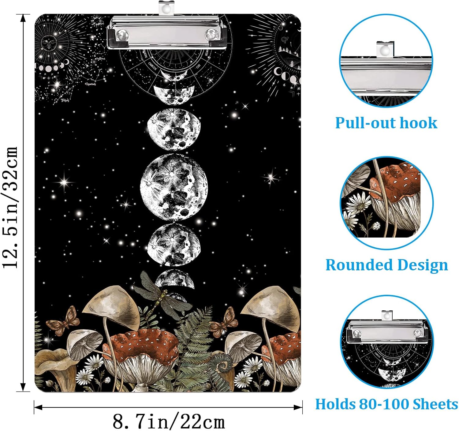 Vintage Mushroom and Moon Phase Clipboard A4 Letter Size Plastic Decorative Clipboards for Teacher,Nurse Doctor Student and Kid Cute Design for Standard Size 12.5 x 8.7