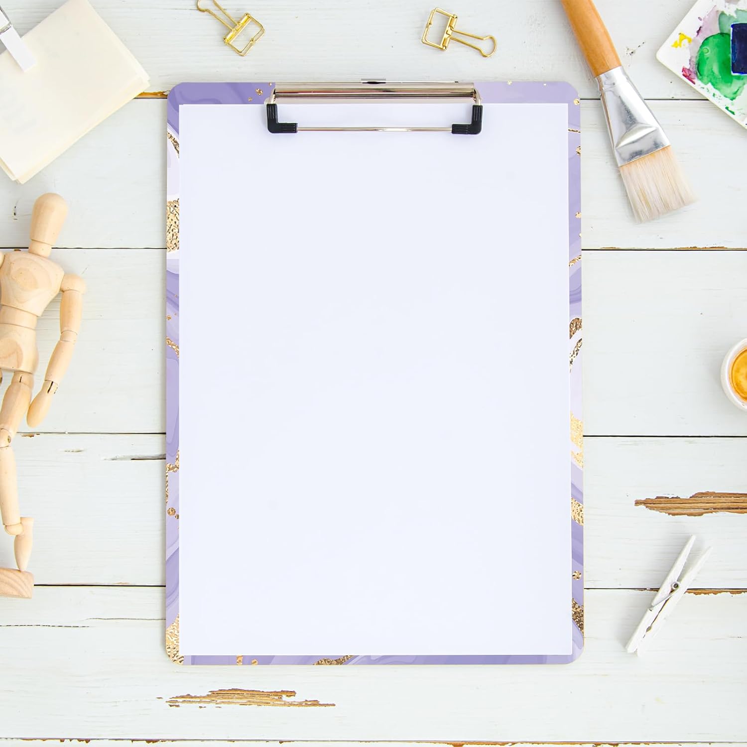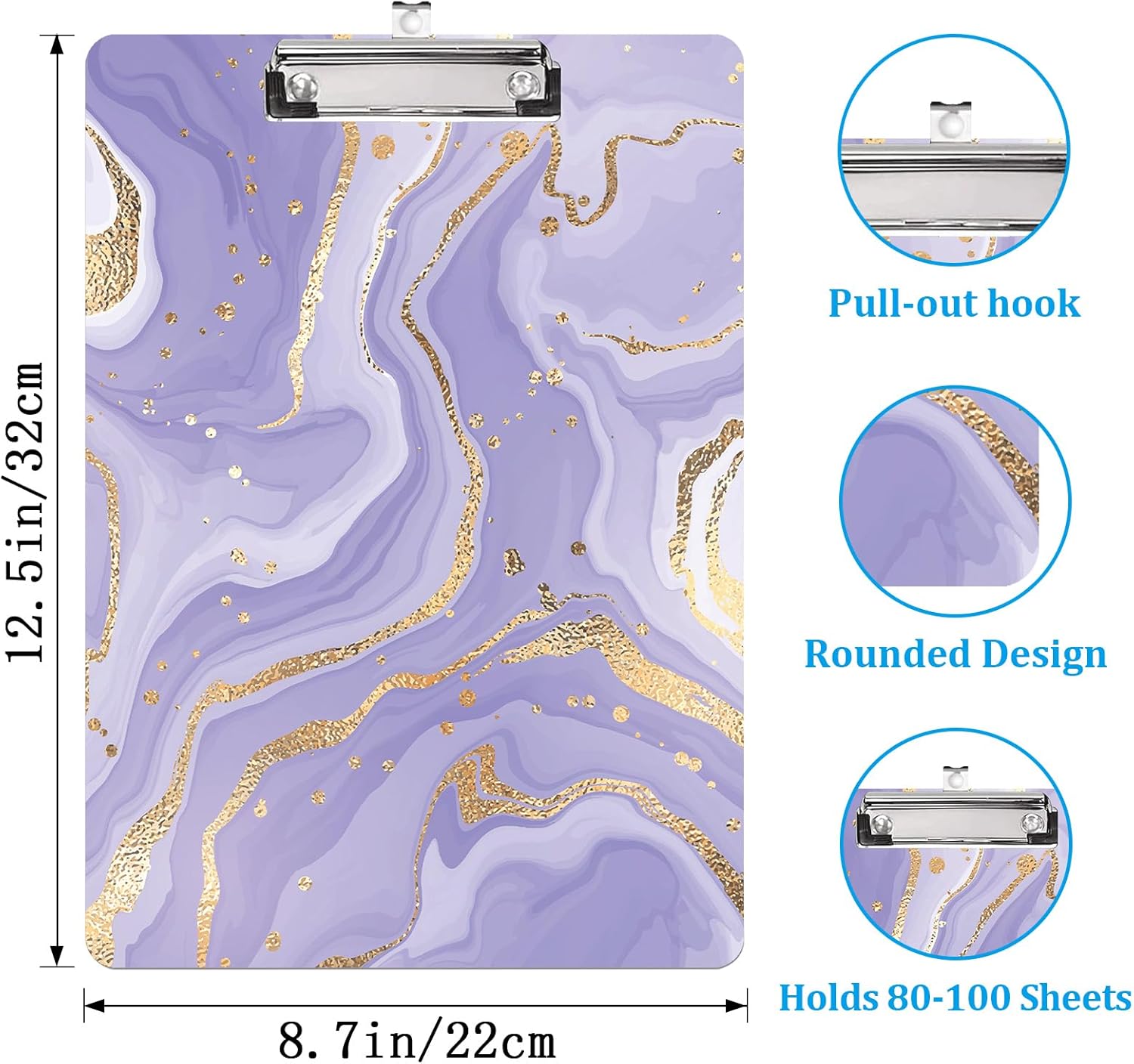Purple Marble Design Letter Size Plastic Clipboards for Students Women Man and Kids A4 Standard Size 8.7 x 12.5 with Low Profile Metal Clip