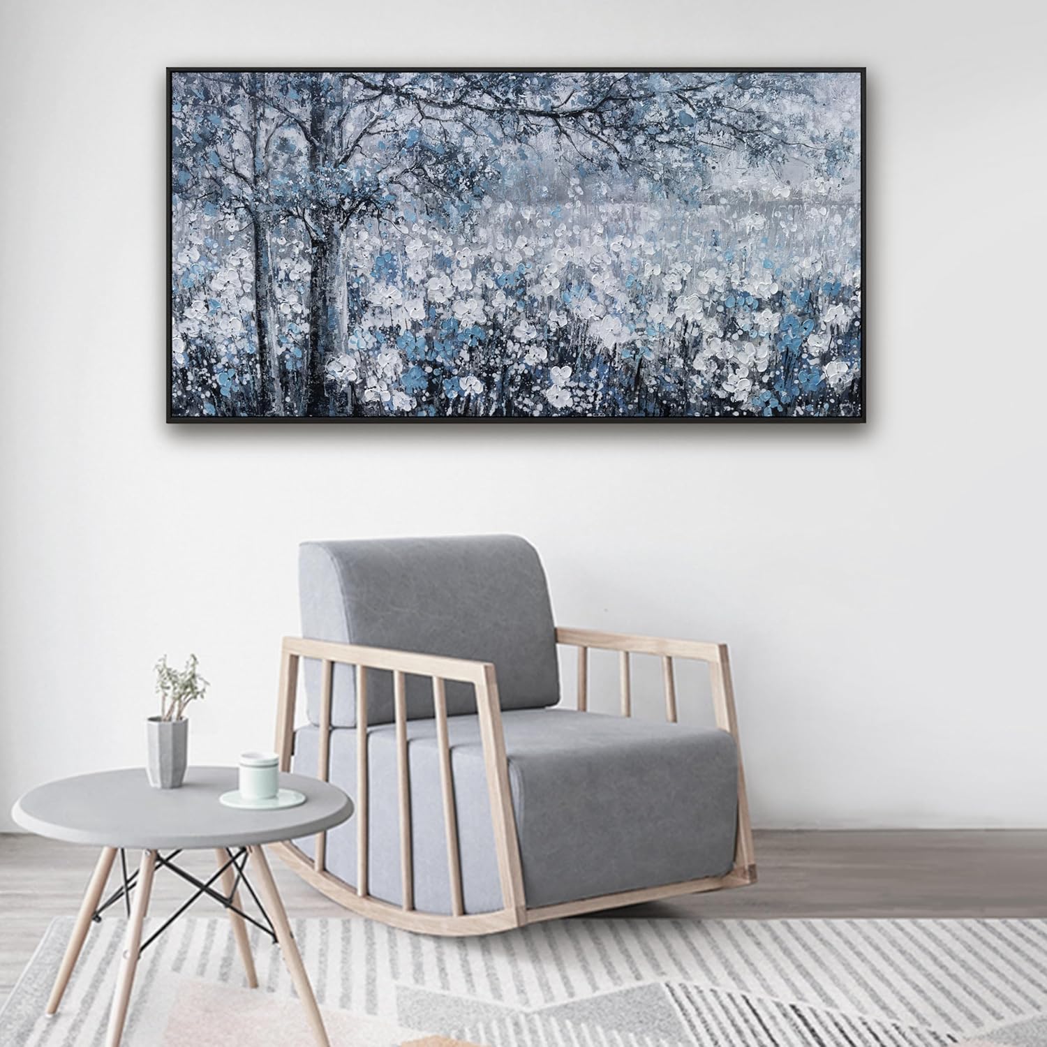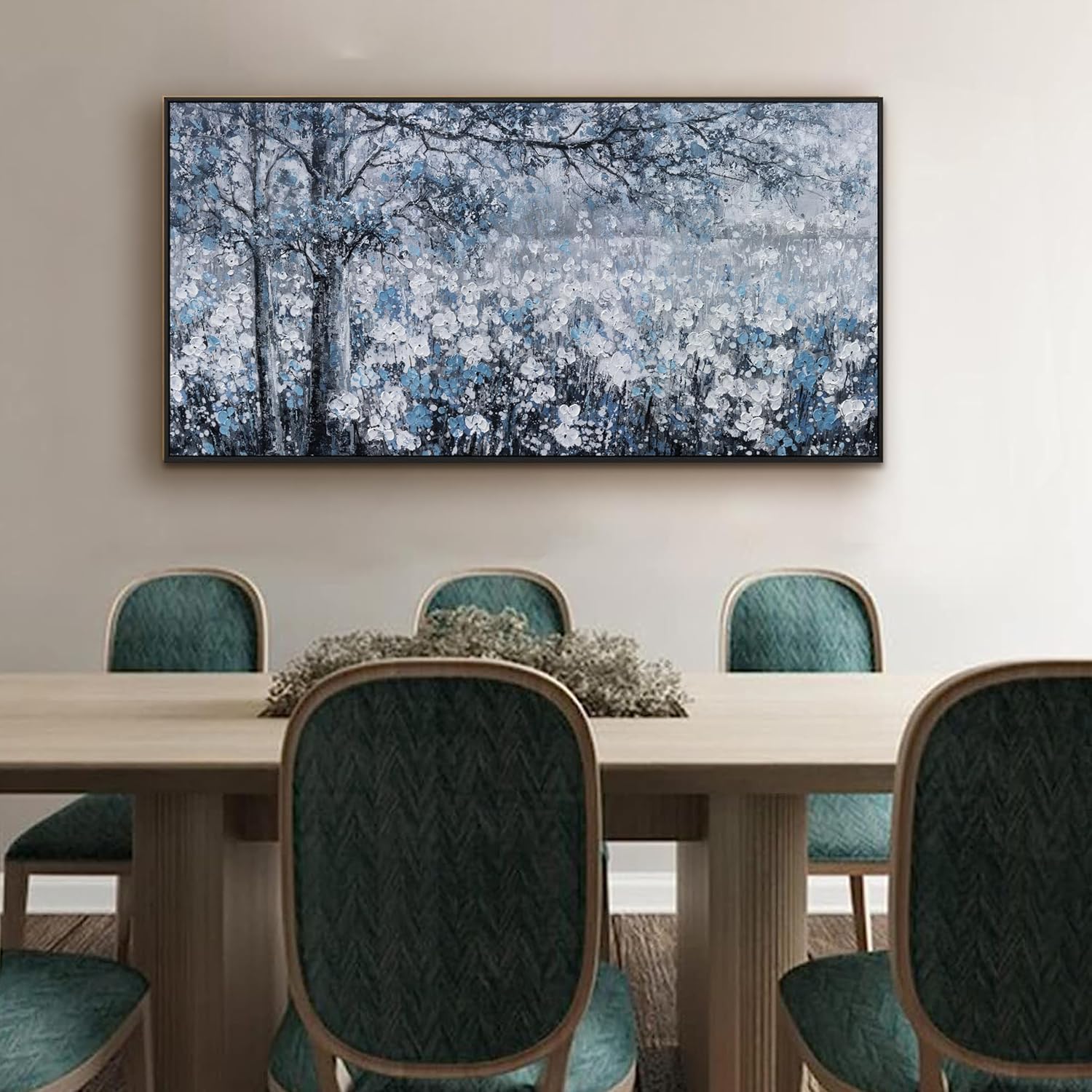 Canvas Wall Art Print Paintings Blue And White Abstract Tree Flower Landscape Home Prints Decor Framed Ready To Hang For Living Room Bedroom And Office Home Kitchen Artwork 20"×40"