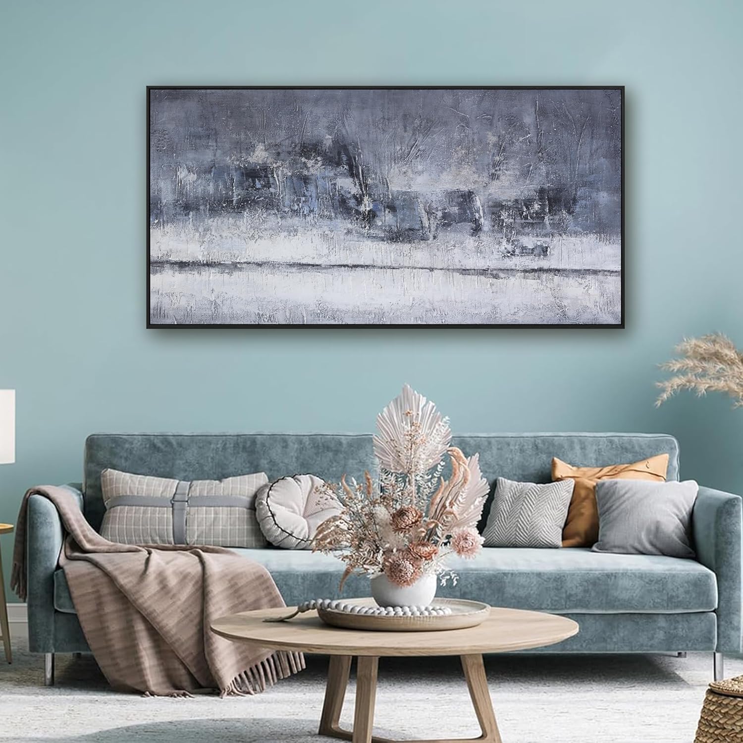 Abstract Wall Art Canvas Artwork Gray And White Blue Decor Modern Canvas Wall Prints Abstract Wall Decor Suitable For Bedroom Apartment Office Wall Decor Can Be Hung 24"X48"With Framed
