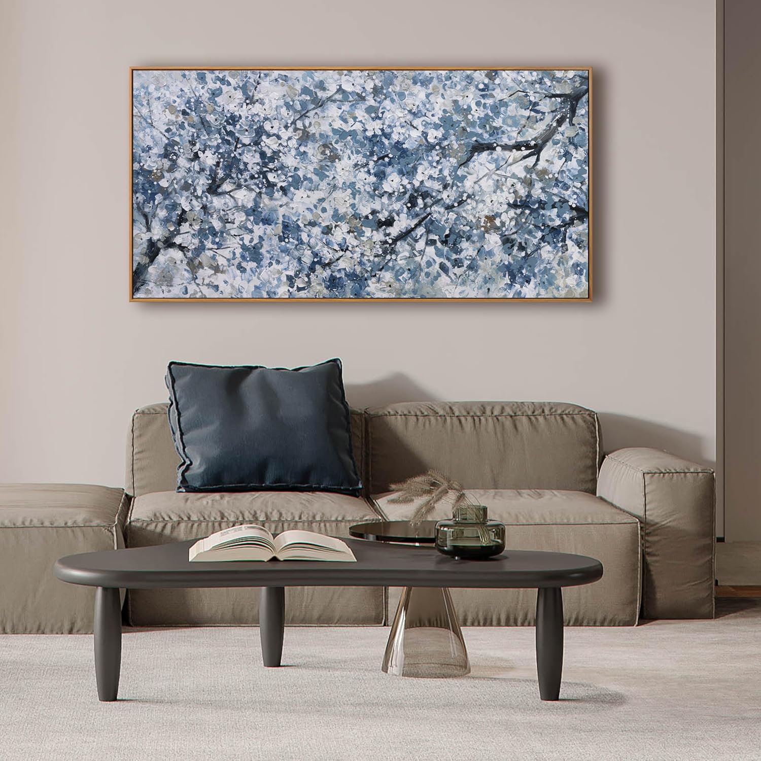 Canvas Wall Art Oil Painting Dark Blue And White Abstract Flower Tree Plants Wall Decor Pictures For Bedroom Canvas Botanical Wall Art Decorations Artwork For Living Room Home Office 20"×40"Framed
