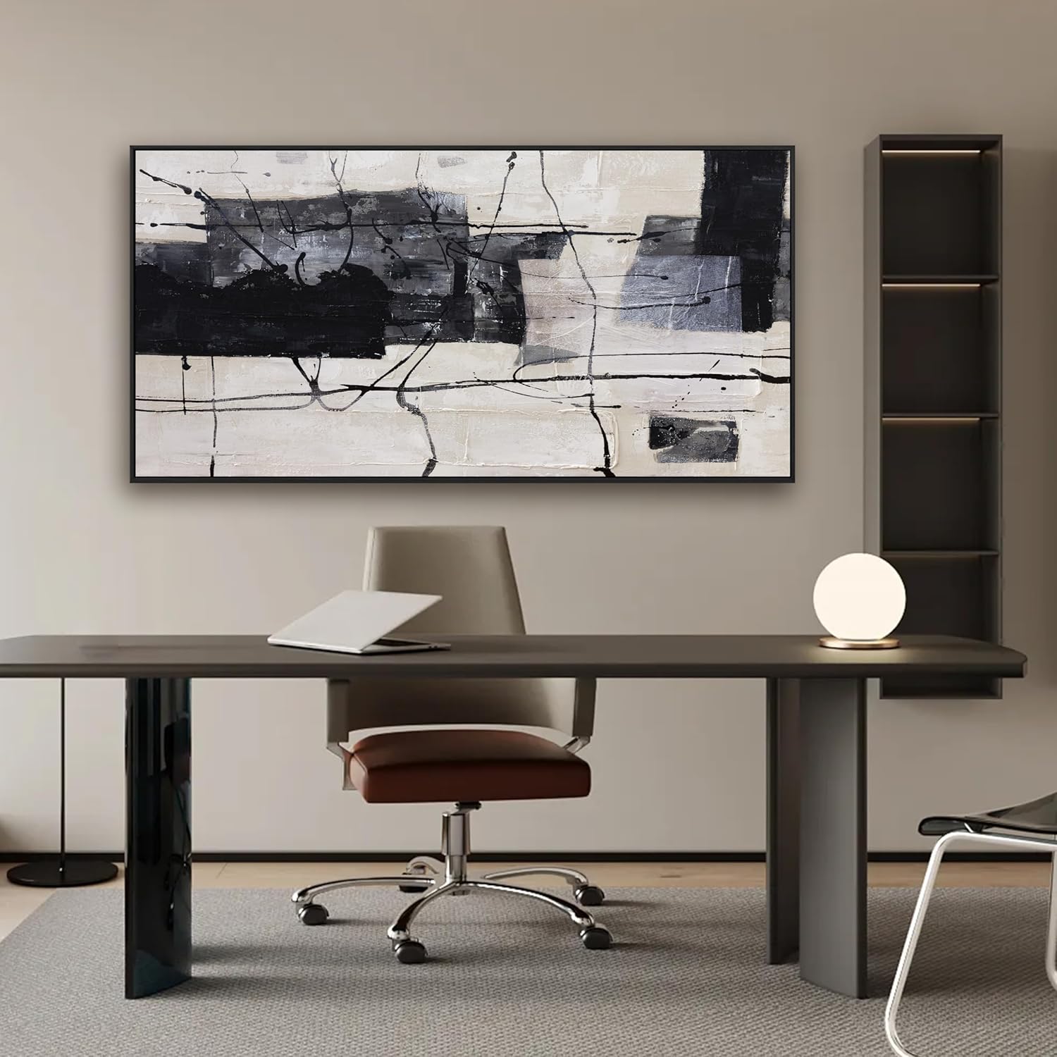 Black And White Abstract Wall Art Small Size Framed Home Artwork Decor Modern Minimalist Canvas Painting Living Room Decor For Bedroom Office Wall Decor 20"X40"