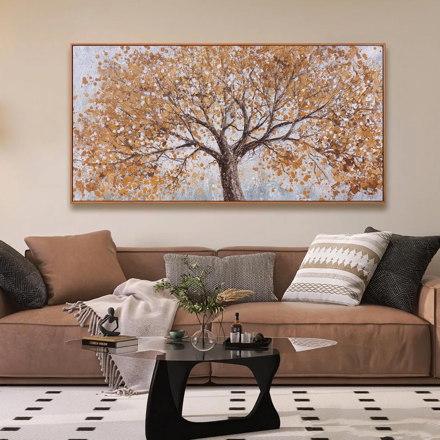 Framed Wall Art Gold Tree Of Life Framed Modern Artwork Canvas Painting Textured Tree Pictures Wall Decor For Living Room Bedroom Dining Room Home Office Decor Ready To Hang 24"X48"