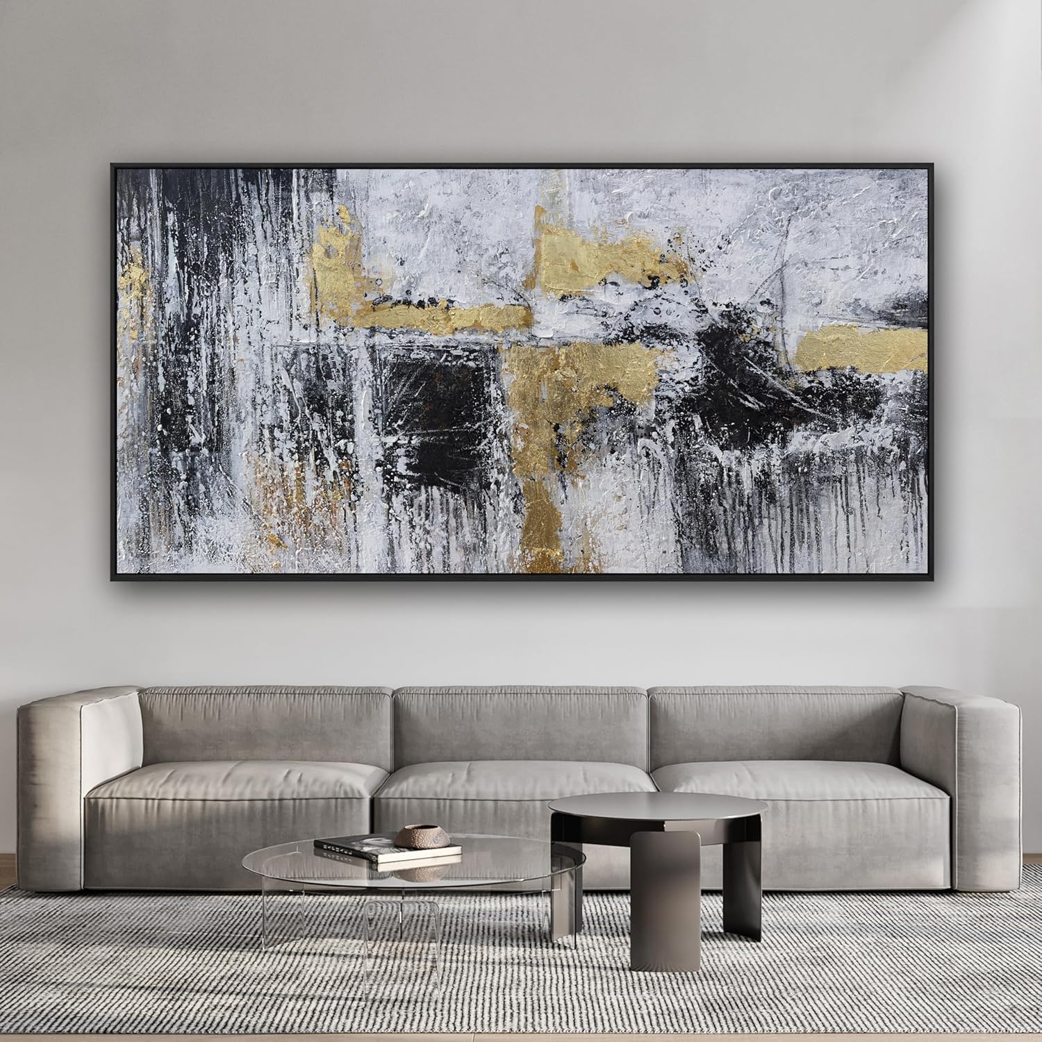 Large Abstract Wall Art Wall Decor Bedroom Pictures Artwork Black And Gold Wall Decor Artwork Modern Painting Wall Decoration Pictures For Living Room Home Kitchen Office 29x58 Inch Framed