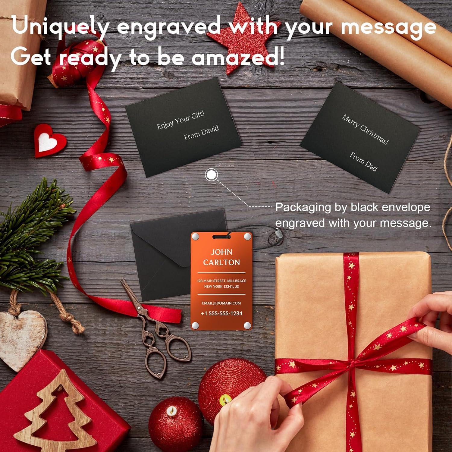 Personalized Luggage Tags for Suitcases - Aluminum Custom Luggage Tags for Backpacks & Bags, Sturdy, Waterproof & Heavy Duty (Orange/Card-Sized)