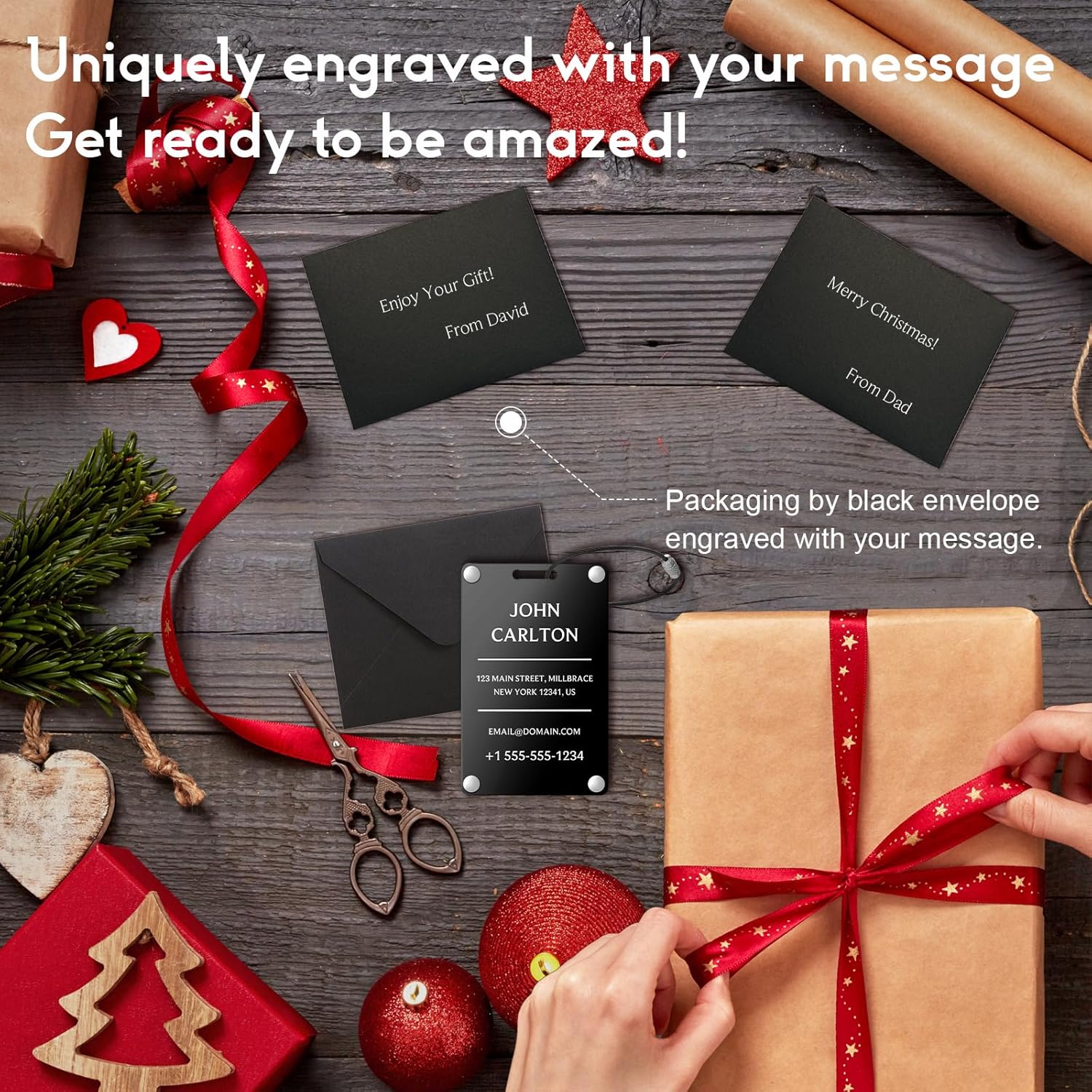 Personalized Luggage Tags for Suitcases - Aluminum Custom Luggage Tags for Backpacks & Bags, Sturdy, Waterproof & Heavy Duty (Black/Card-Sized)