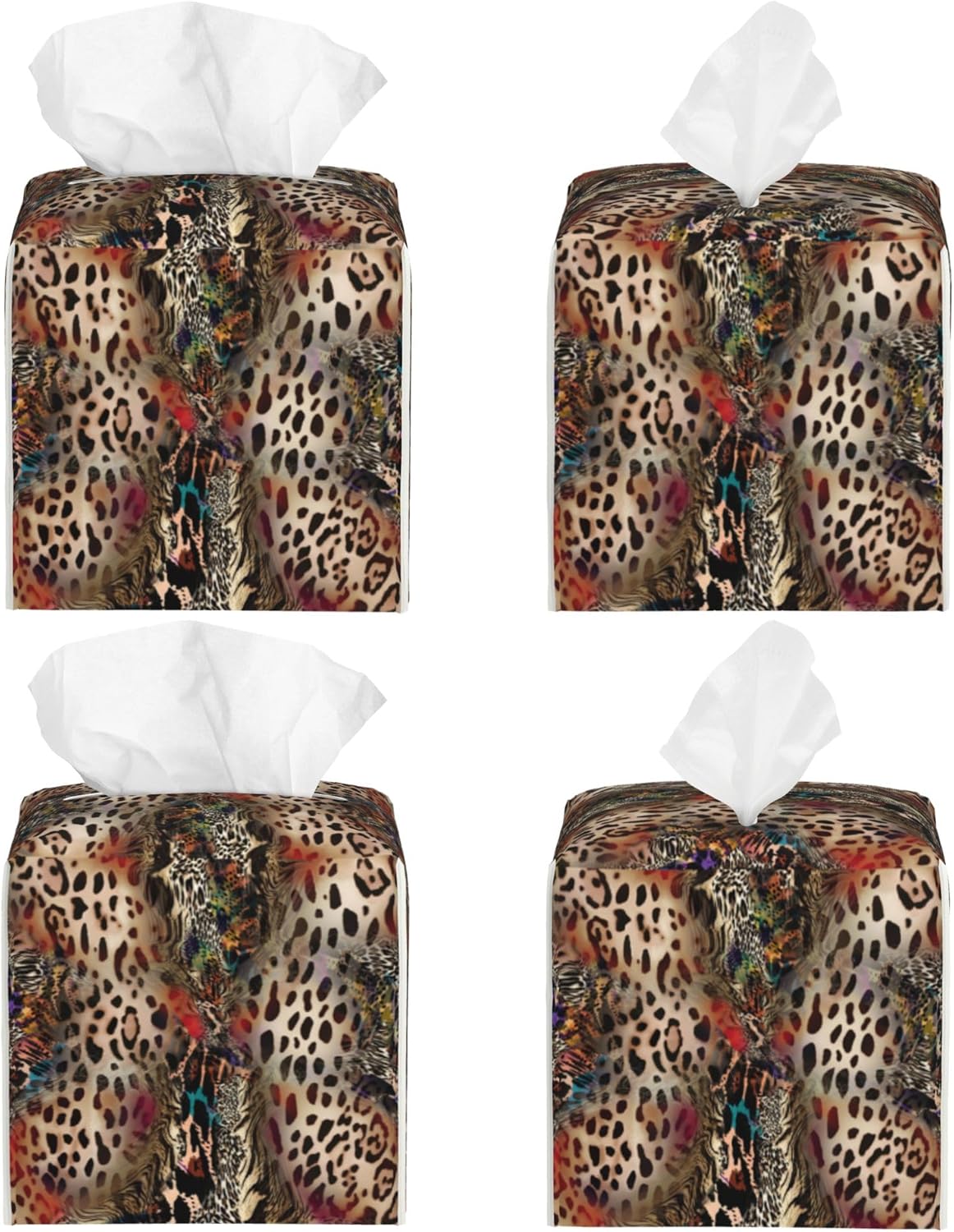 Leather Tissue Box Holder African Animal Leopard Print Tissue Box Cover Square Waterproof Tissue Holder Organizer Modern Napkin Holder for Bedroom Dresser Night Stand Office Desk