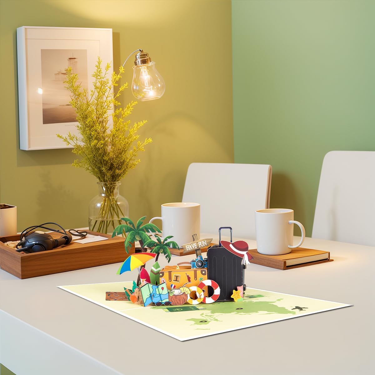 Travel Pop Up Card for Daughter, Pop-Up Vacation Card with Envelope, 3D Happy Birthday Card for Wife, Retirement Card for Mom.