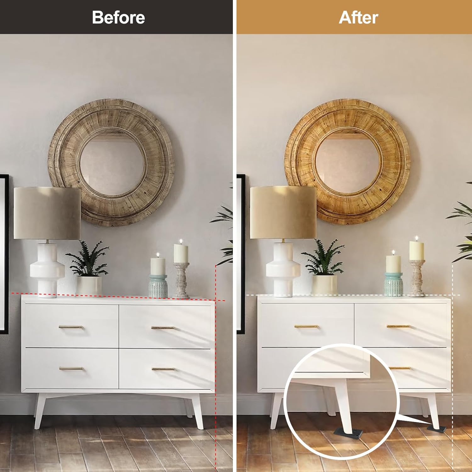 - 【Safe and Durable】: Our Furniture Raisers is made of high quality flexible rubber material, has high load-bearing performance, and will not be deformed after a long time of use. The wedge shims are angled design to perfectly adjust the height of the furniture. It's suitable for kinds of floor on wood floors, concrete, tile and carpet etc