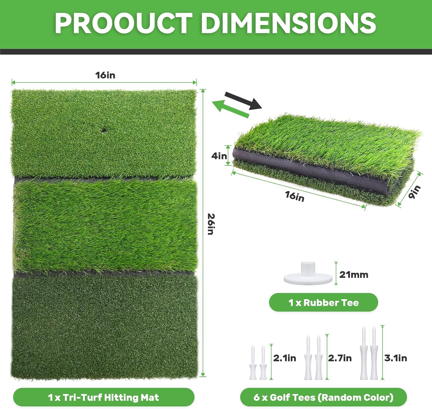 - 【Package Included】COSPORTIC Tri-Turf Golf Mat *1,Rubber Tee*1, Golf Tees*6(Random Color)