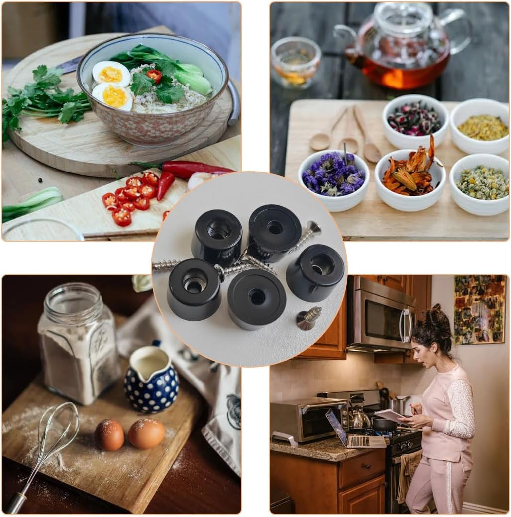 - Quality material: Black Rubber Feet for Cutting Board made of high-quality rubber, anti slip and soft. the soft cutting board rubber feet bottom increases friction, and the anti-skid effect is good, Protect your counertop, cabinet from scratching, also provide good shock absorption. built in a stainless steel washer for each soft chopping board rubber feet, prevents screws from passing through rubber. Stainless steel screws prevent rust. Good durability and long-term use.