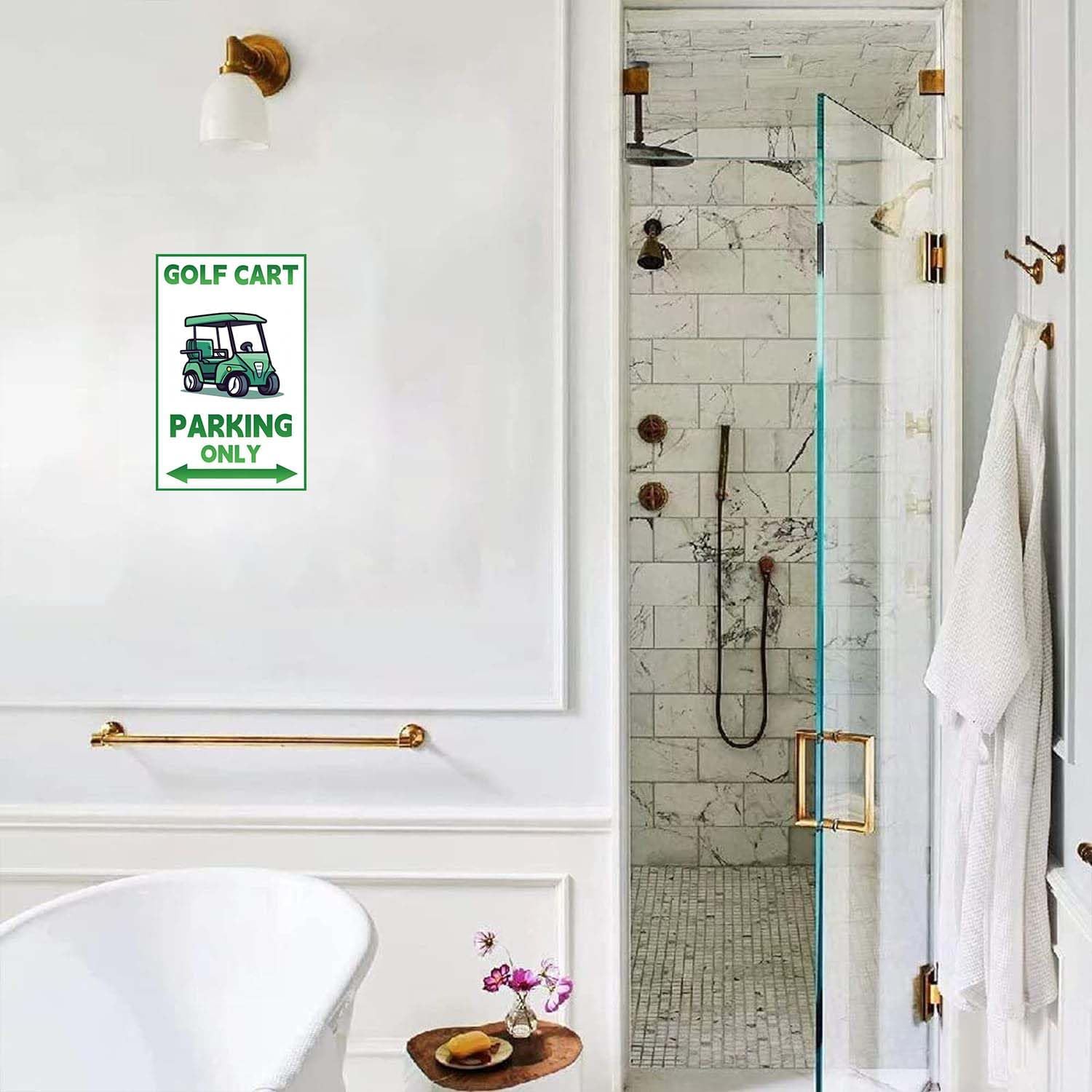 - Golf Cart Parking Only Metal Plaque Size: Our golf decor is 8x12 inches in size, making them the most attractive no matter where they are. The edges of golf decor are folded over to be smooth and not have sharp metal edges.