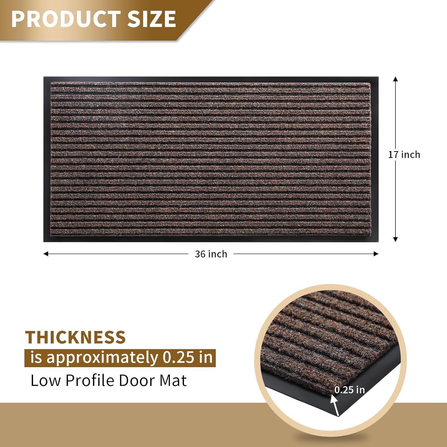 Yimobra Front Door Mat Outdoor Indoor Entrance, 100% Waterproof All-Season All Weather Doormat, Welcome Matt Outside Entry, Non Slip, Low Profile, Heavy Duty Patio Porch Floor Mats,36 x 17