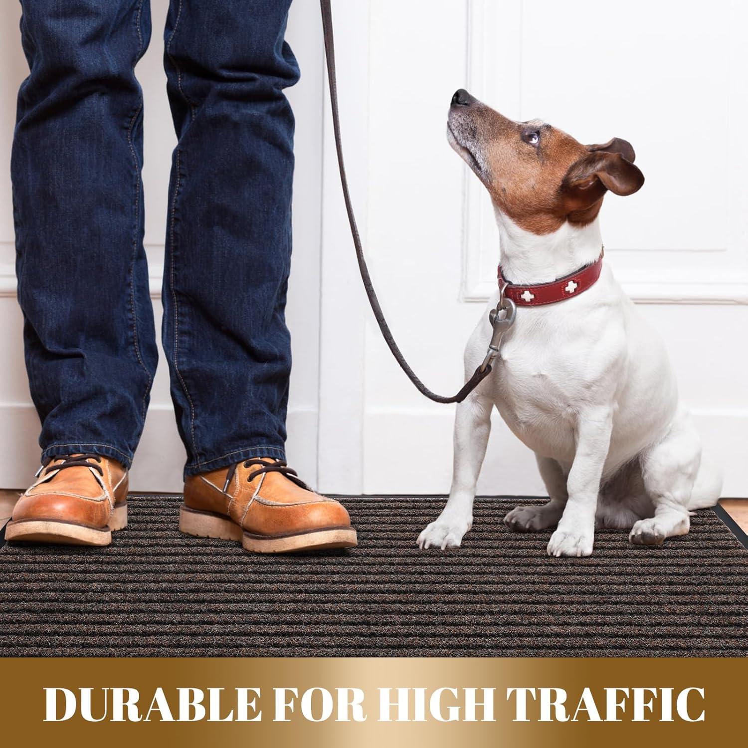 - 【Capture Dirt and Moisture】: Yimobra door mat outside entrance adopts classic striped groove design, forming a detention dam extending in all directions, helping to capture dirt, dust, gravel, mud, sand, grass or other messy debris and prevent them from entering Indoor; The surface of floor mat beautifully woven polyester fabric absorbs moisture, and the borderless design allows the doormat to keep water from pooling on rainy or snowy days, keeping your home dry and clean.