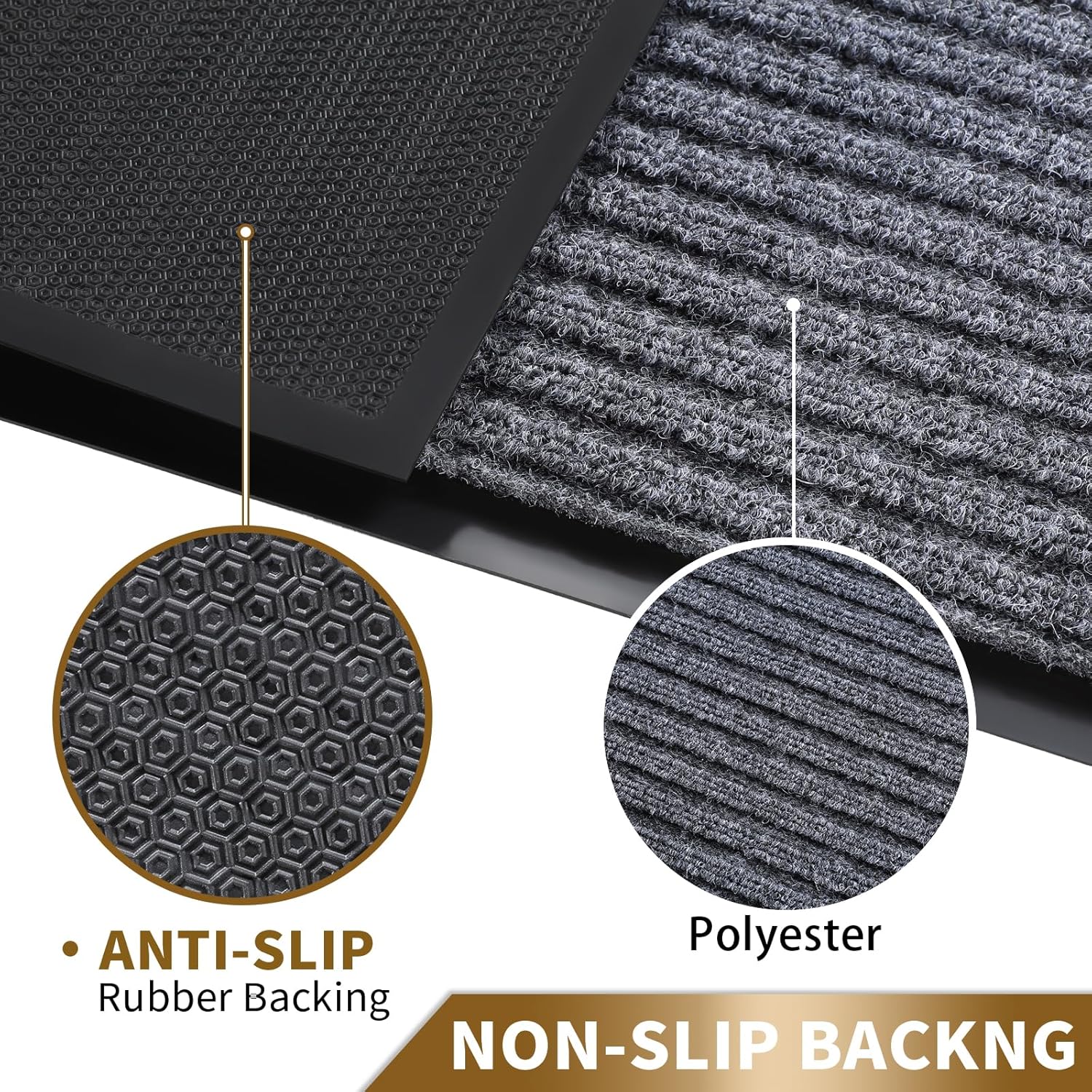 - 【Capture Dirt and Moisture】: Yimobra door mat outside entrance adopts classic striped groove design, forming a detention dam extending in all directions, helping to capture dirt, dust, gravel, mud, sand, grass or other messy debris and prevent them from entering Indoor; The surface of floor mat beautifully woven polyester fabric absorbs moisture, and the borderless design allows the doormat to keep water from pooling on rainy or snowy days, keeping your home dry and clean.