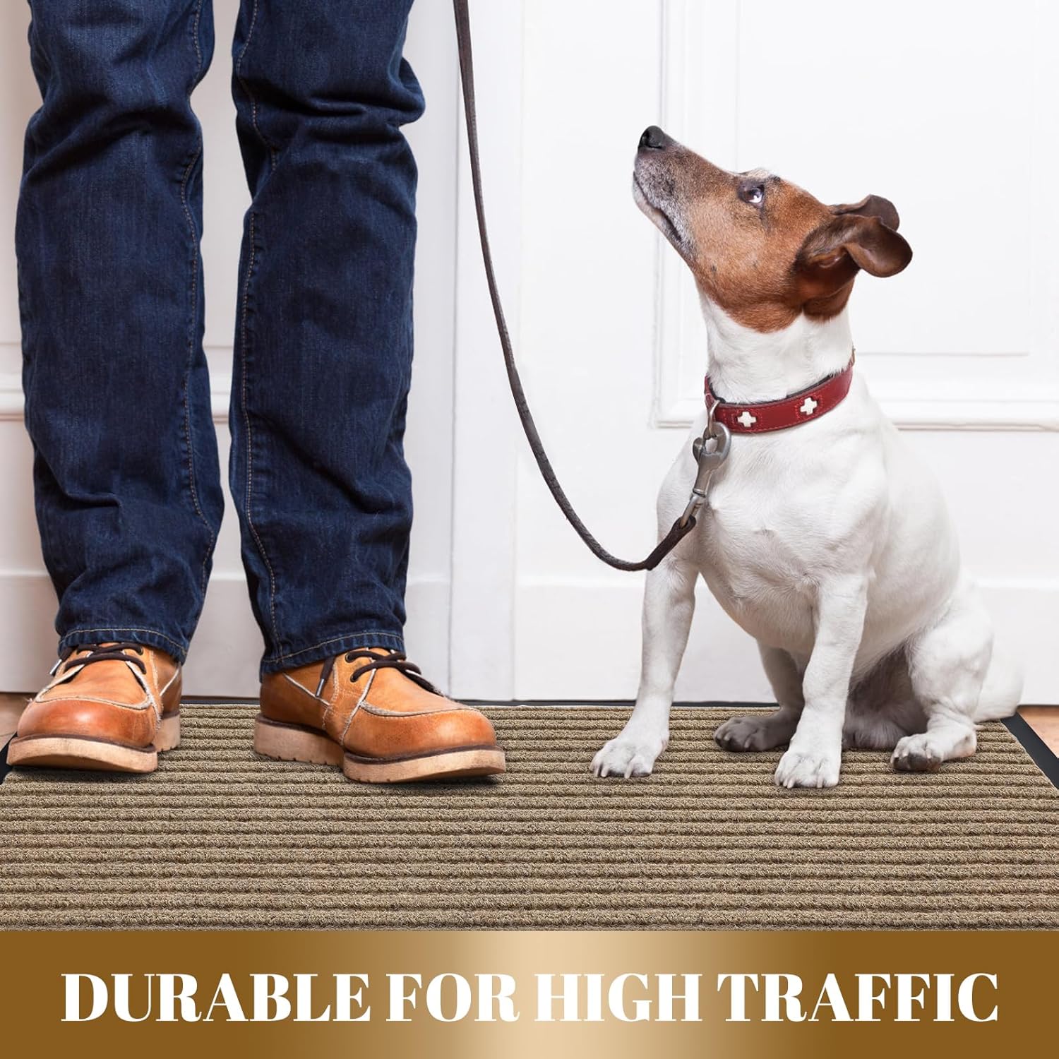 Yimobra Front Door Mat Outdoor Indoor Entrance, 100% Waterproof All-Season All Weather Doormat, Welcome Matt Outside Entry, Non Slip, Low Profile, Heavy Duty Patio Porch Floor Mats,47 x 32,Khaki