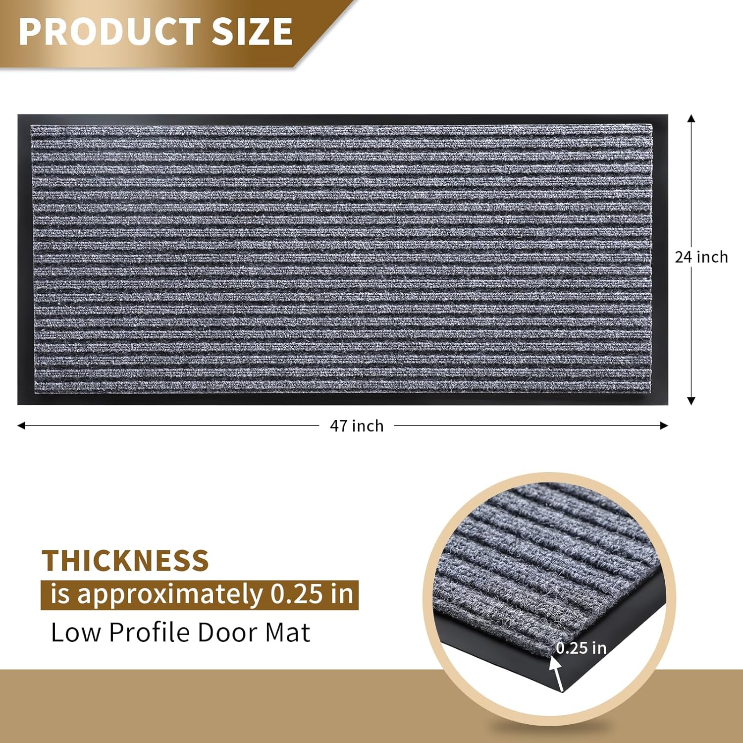 - 【Non Slip Rubber Backing】: Yimobra welcome mat, 0.20 inch ultra-thin design, can glide under most doors without jamming or curling. The indoor mat uses a high-quality non-slip rubber backing to help prevent you from slipping when entering or going out, keeping you safe. At the same time, the rubber backing can prevent water and mud from penetrating the floor, keeping door mat in place and not sliding or wear the floor and effectively protect your indoor floor.
