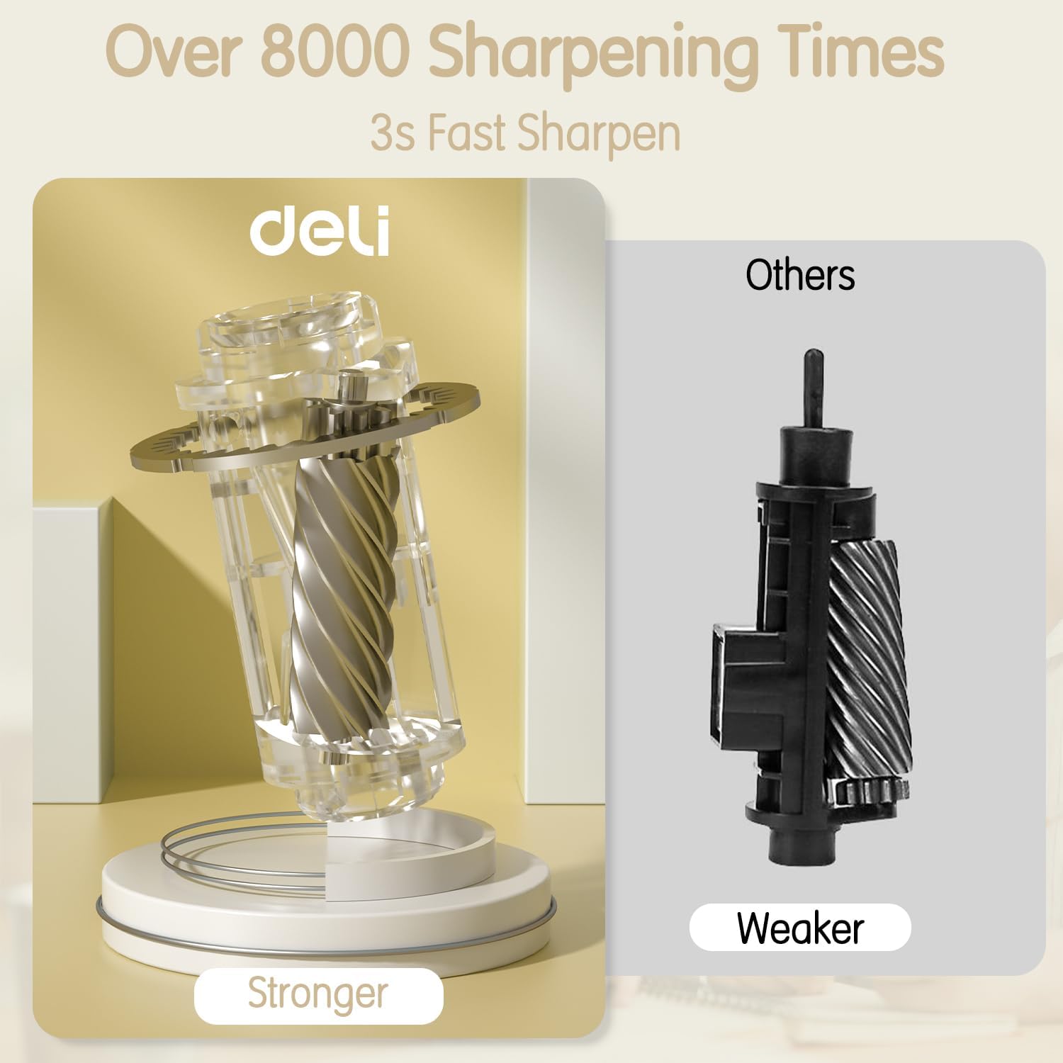 Deli Electric Pencil Sharpener - Fully Automatic, Auto In & Out, Rechargeable Hands-Free for 6.9-12mm Pencils - Home & Classroom - Battery Operated - Beige