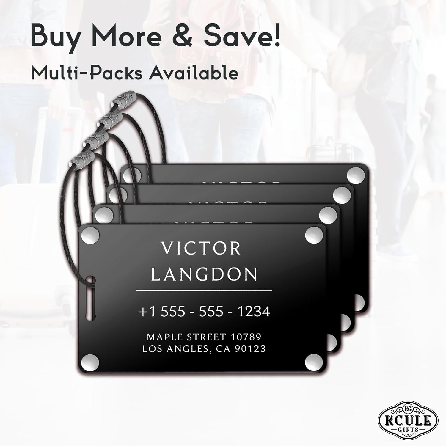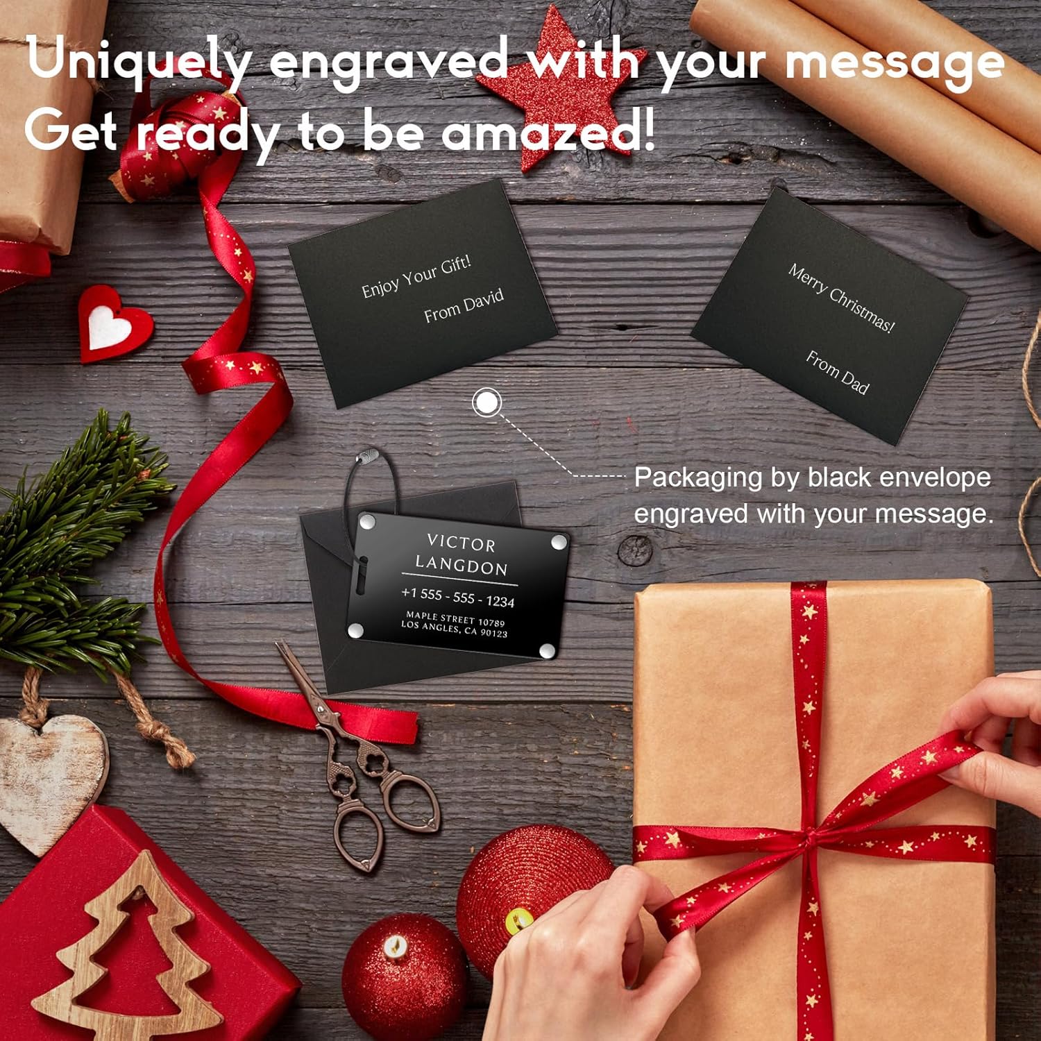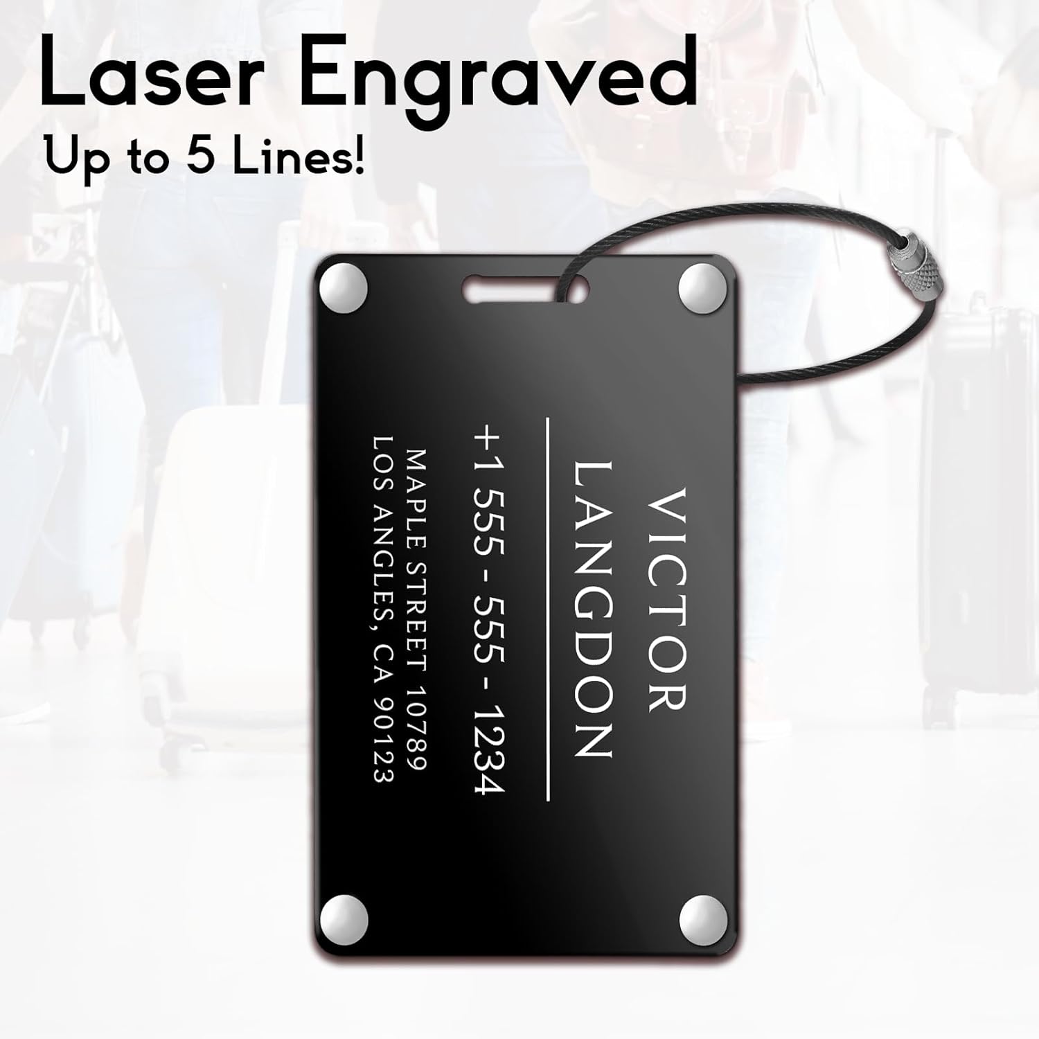 Personalized Luggage Tags for Suitcases - Aluminum Custom Luggage Tags for Backpacks & Bags, Sturdy, Waterproof & Heavy Duty (Black/Card-Sized)