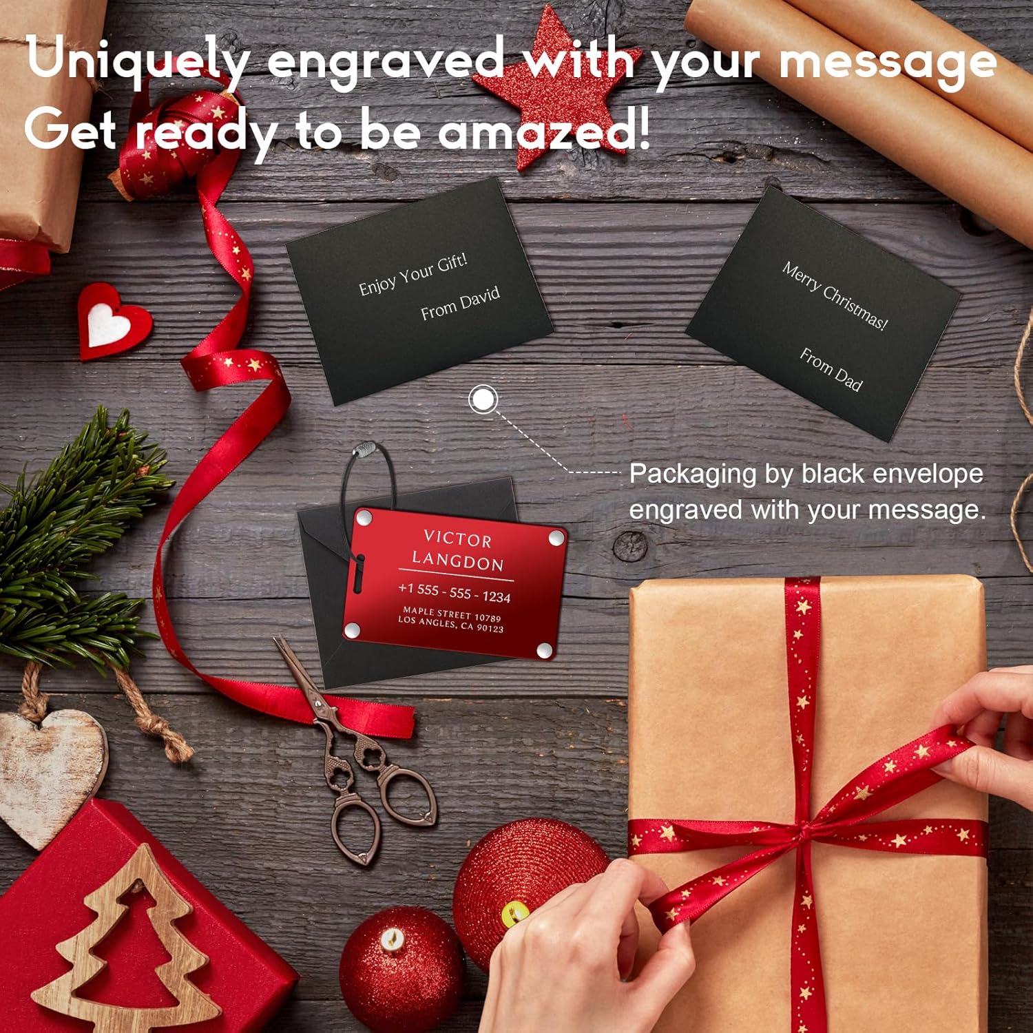 Personalized Luggage Tags for Suitcases -Aluminum Custom Luggage Tags for Backpacks & Bags, Sturdy, Waterproof & Heavy Duty (Red/Card-Sized)