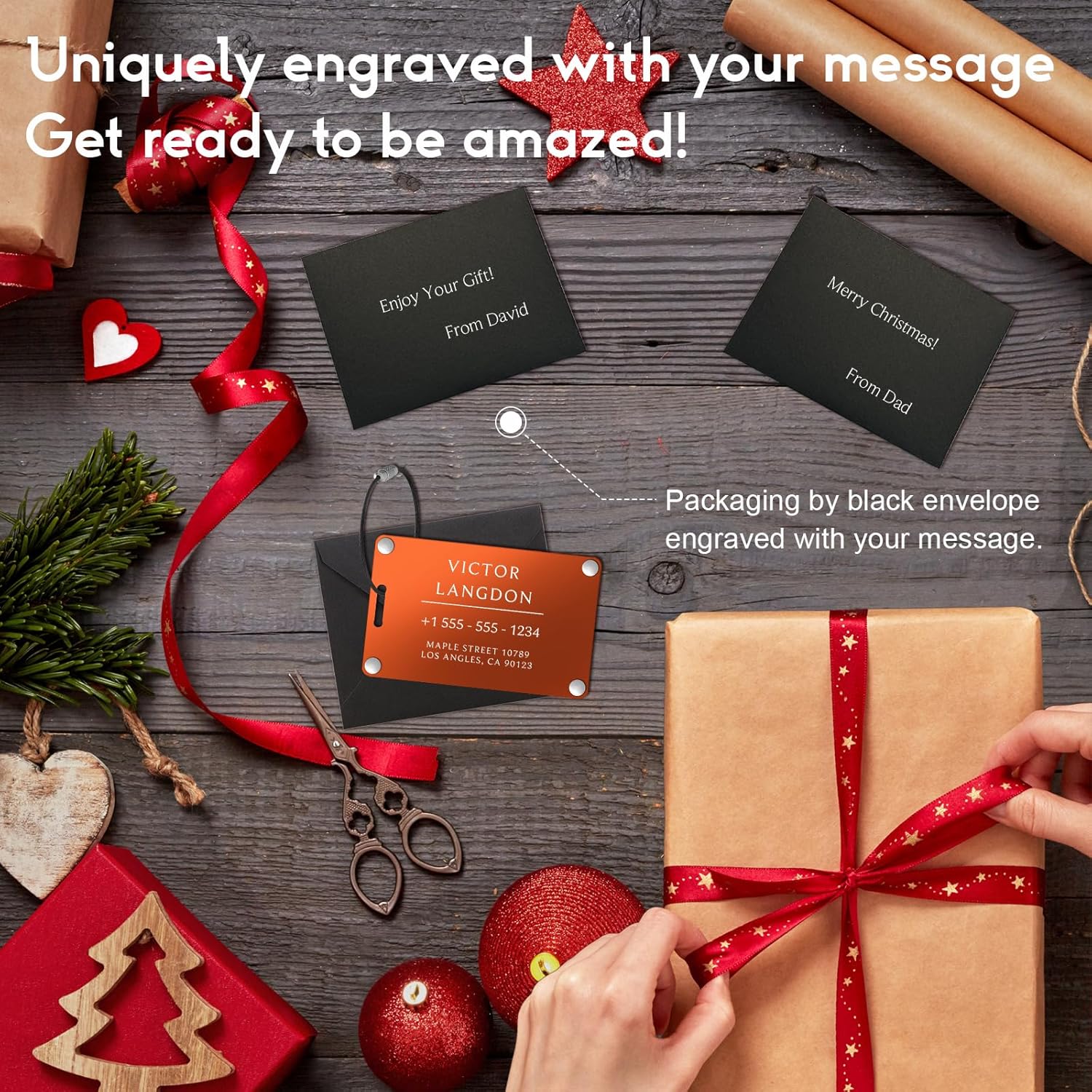 Personalized Luggage Tags for Suitcases - Aluminum Custom Luggage Tags for Backpacks & Bags, Sturdy, Waterproof & Heavy Duty (Orange/Card-Sized)