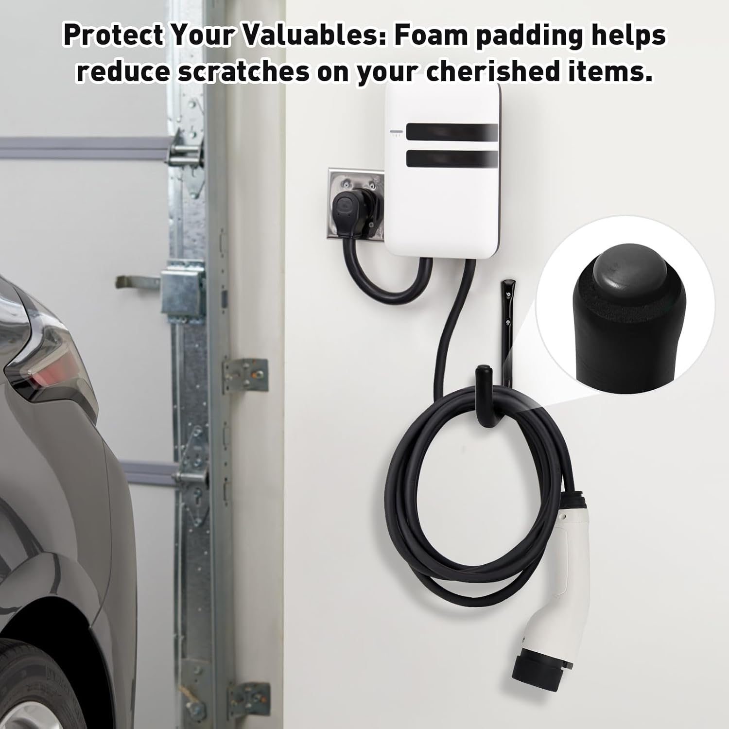 KURUI 10" Garage Organization Wall Hooks, 66 LB Heavy Duty Water Hose Holder for Hanging Ladder Extension Cord Garden Tool Cable, 4 Pcs, Black