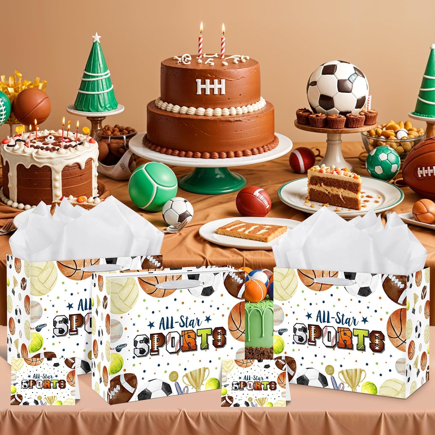 - 【Sports Party Gift Bag】: This large sports party gift bag set includes 1pcs sports ball gift bag, 1pcs sports ball greeting card, and 3pcs tissue papers. The sports party goodie bags feature a very shiny and realistic print, which makes the sports party gift bags look more full of the sports party atmosphere.