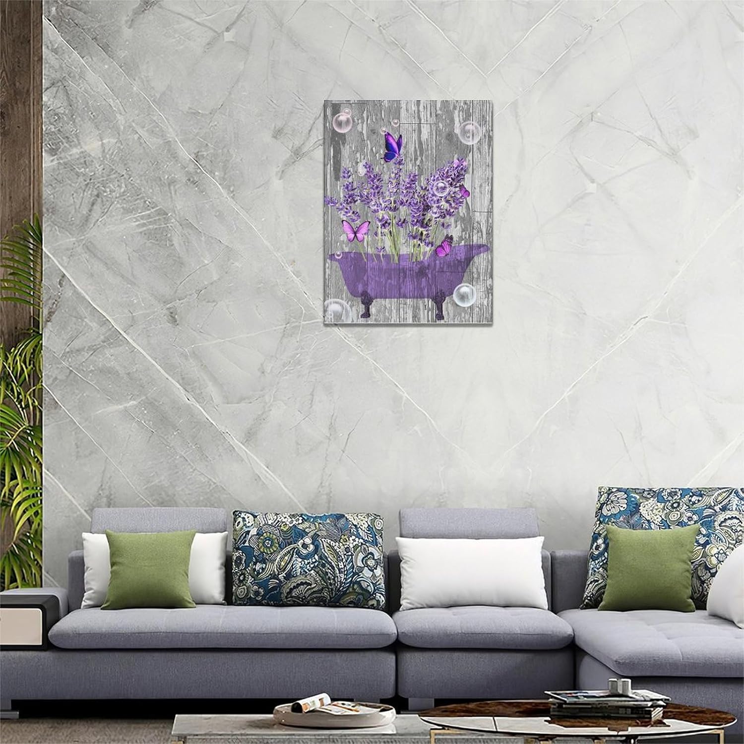 Lavender Bathroom Decor Wall Art Purple Farmhouse Bathroom Pictures for Wall Rustic Butterfly Bathtub Artwork Vintage Country Bathroom Grey White Painting Framed Bath Laundry Decorations 20"x24"