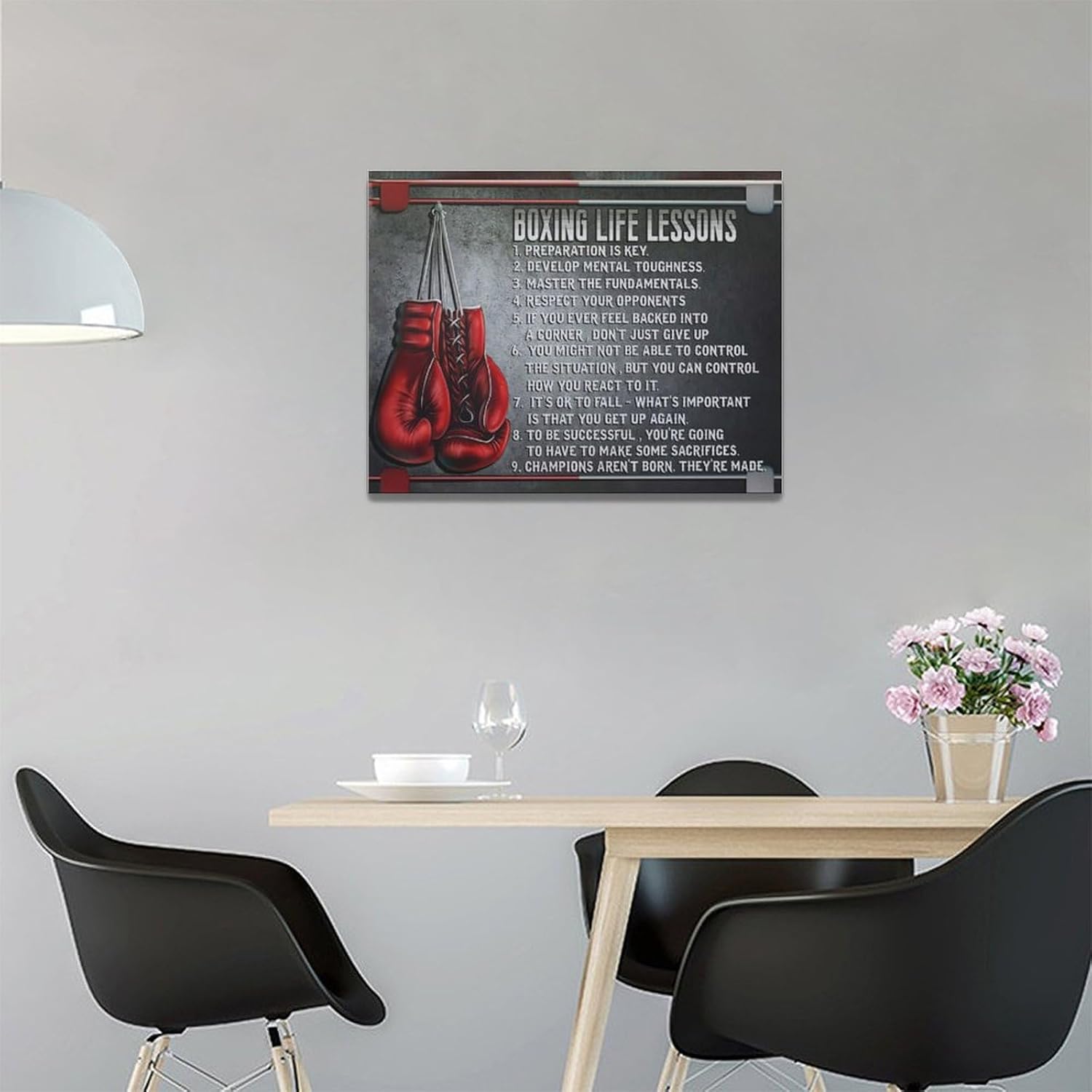 Boxing Wall Art Sports Boxing Lessons Pictures Wall Decor Motivational Quotes Boxing Gloves Canvas Painting Artwork Modern Home Decorations Framed for Bedroom Office Living Room 20"x24"